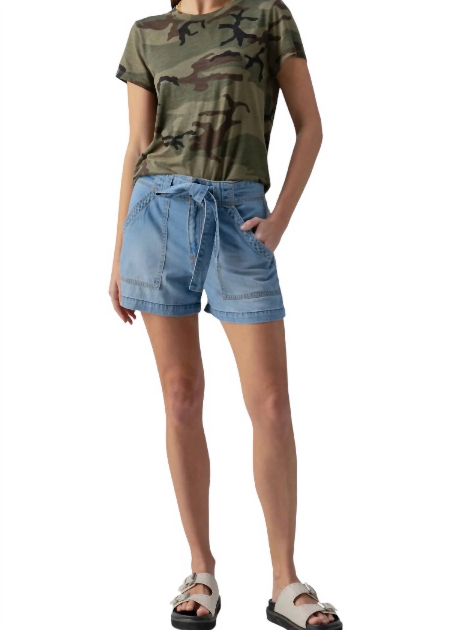 You can never have too many jean shorts and these will be your new favorites. The elegant sash tie elevates this seasonal staple, adding sophistication to your warm-weather wardrobe. It features a zip fly with button closure, front slant pockets, back button-flap patch pockets, and a removable sash. 85% Lyocell, 15% Cotton. Machine wash, dry flat.