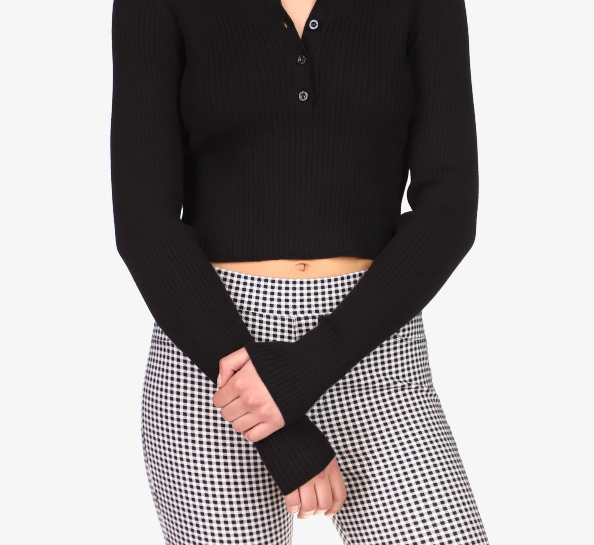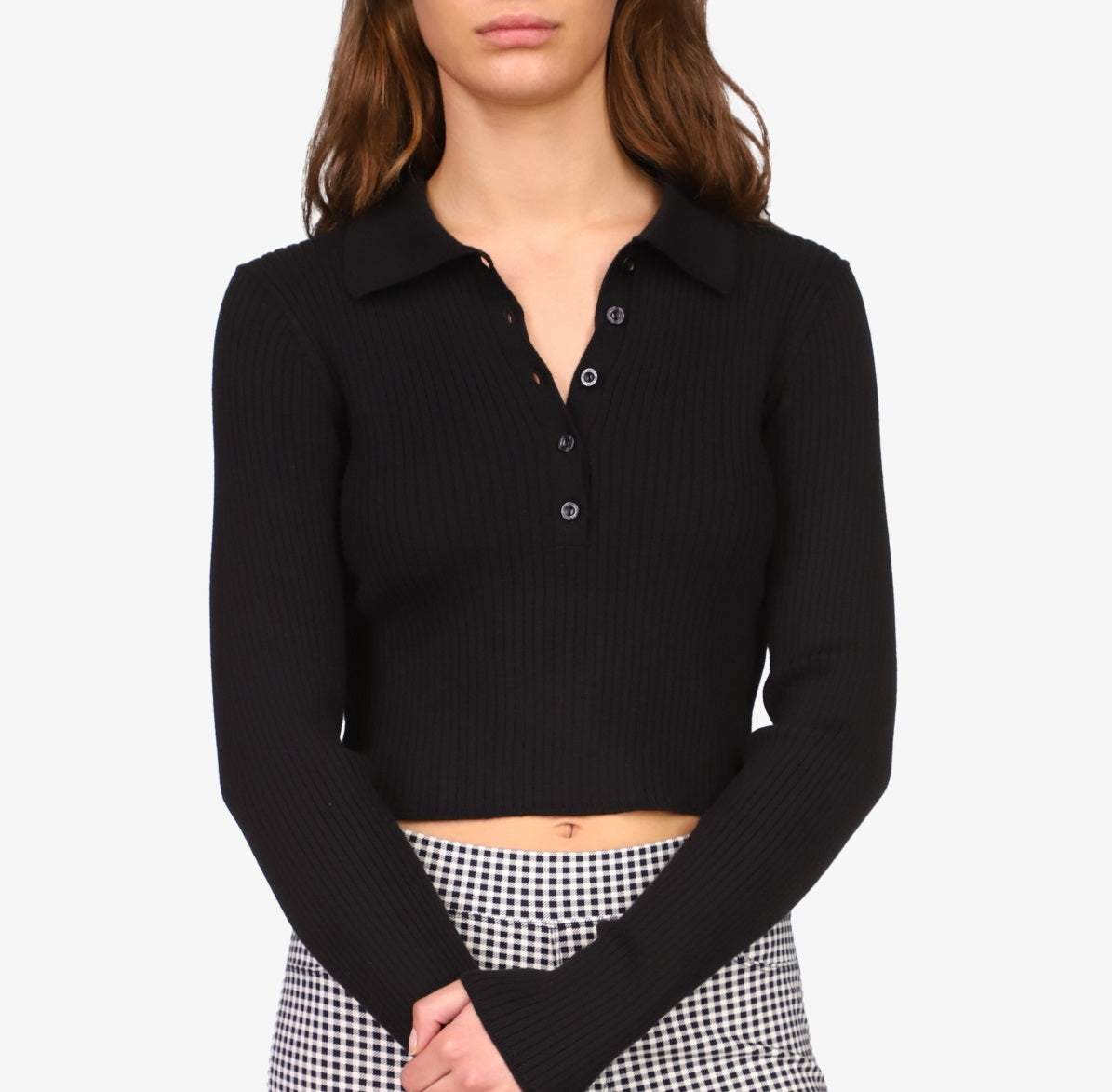 The Bel Air top from Sanctuary is a cropped pick designed with a classic ribbed finish and point collar.| Fitted| Point collar; front button closures| Ribbed throughout| Polyester| Machine washable