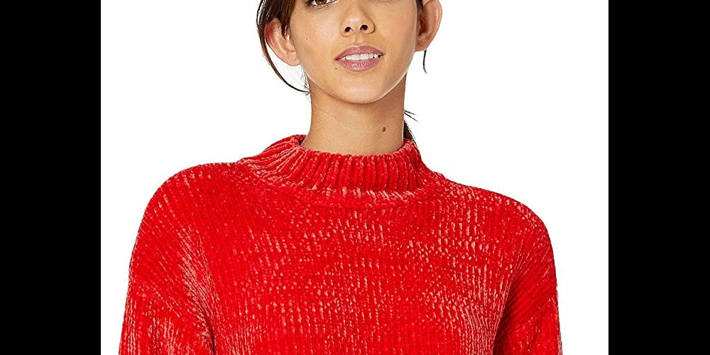 Sanctuary Women's Chenille Mock Neck Sweater Bright Red Size Small