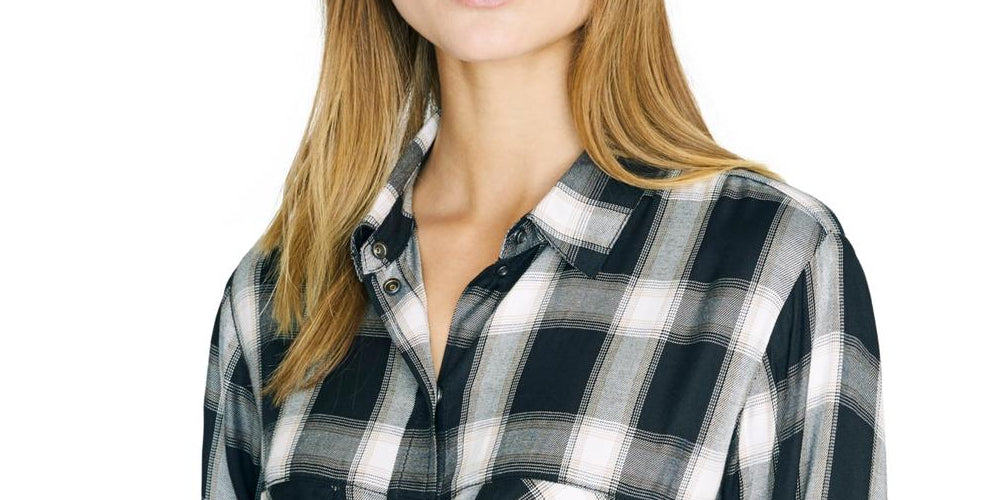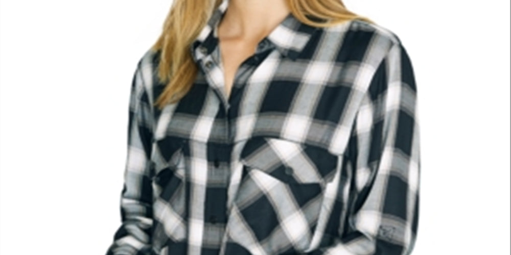 Sanctuary Women's New Generation Plaid Boyfriend Blouse Black Size L