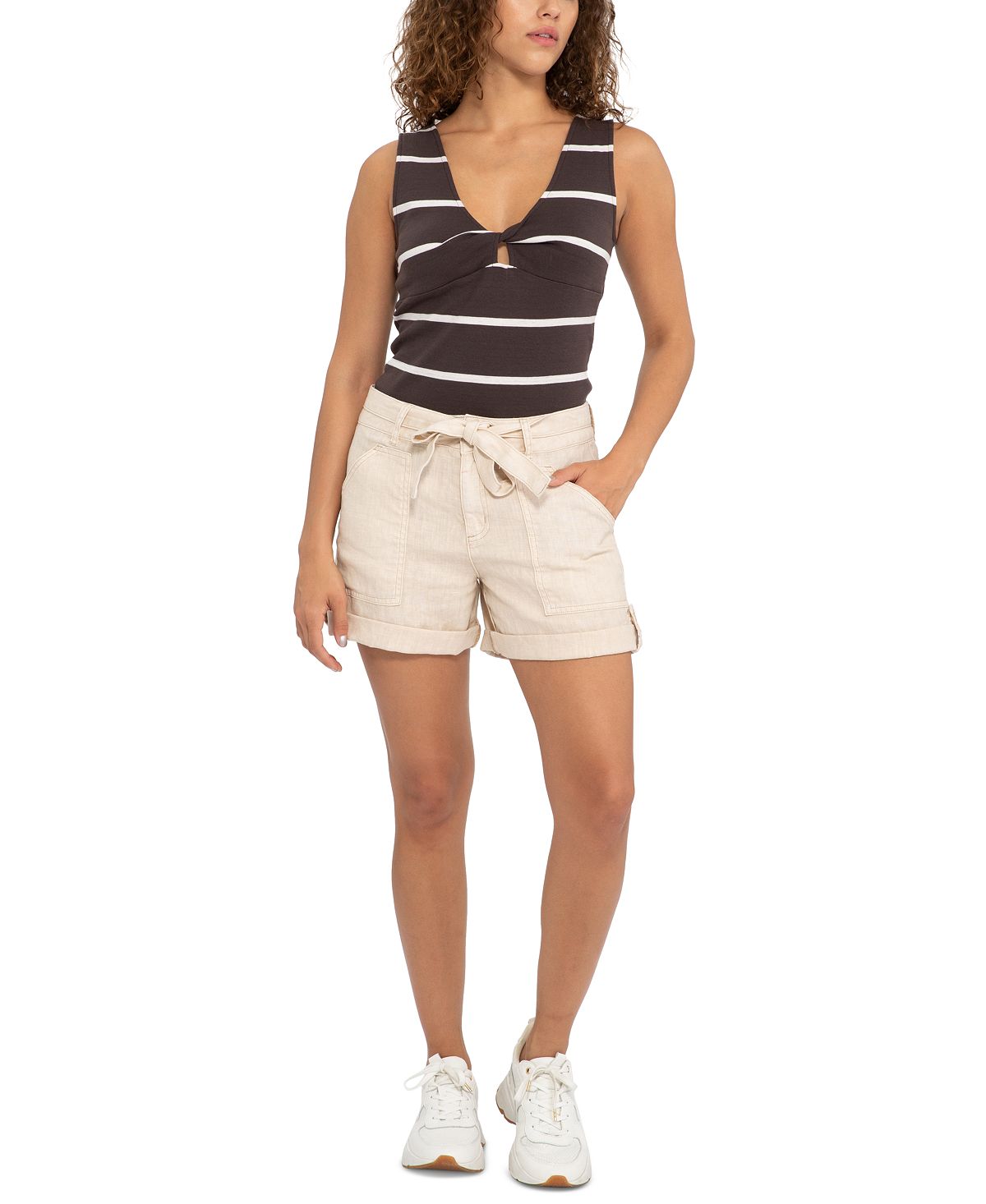 Sanctuary Women's tripe Twist Front Cotton Tank Brown Size X-Small