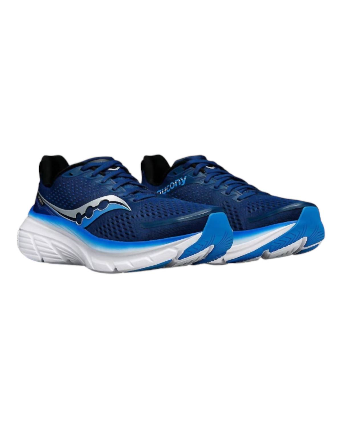This versatile stability running shoe is ideal for daily mileage and casual strolls. It features a textile midsole, durable rubber exterior, and a flat heel with a round toe. Available in a stylish navy and cobalt color palette, it's easy to maintain by hand washing with mild soap, stuffing with newspaper, and air drying.