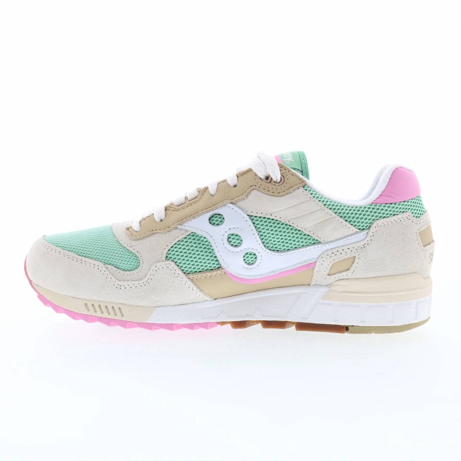 Step up your style with the SAUCONY Men's Shadow 5000 Essential Sneakers, a standout choice in a striking White/Olive/Pink colorway. Crafted with a classic mesh and suede upper, these shoes feature a panelled design that integrates mesh panelling and a logo patch on the tongue for added flair. Composition: Leather/Suede with a flat rubber sole and a rounded toe shape, providing comfort and support for everyday wear. Closure: Lace-up front fastening ensures a secure fit. Perfect for the style-conscious adult, these sneakers are a seamless blend of form and function.