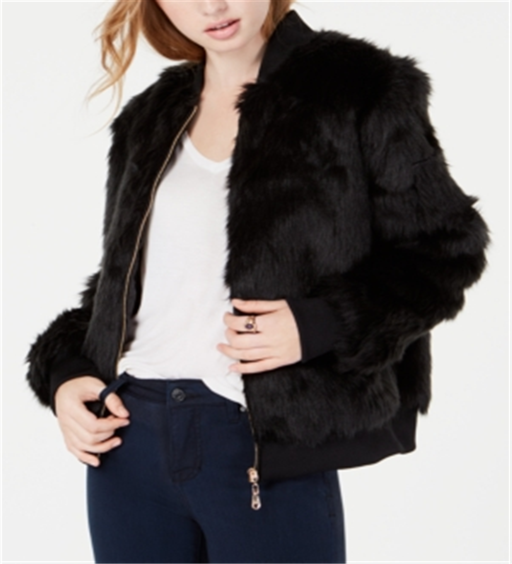Ask a question about Say What? Women's Faux Fur Bomber Jacket Black Size Large