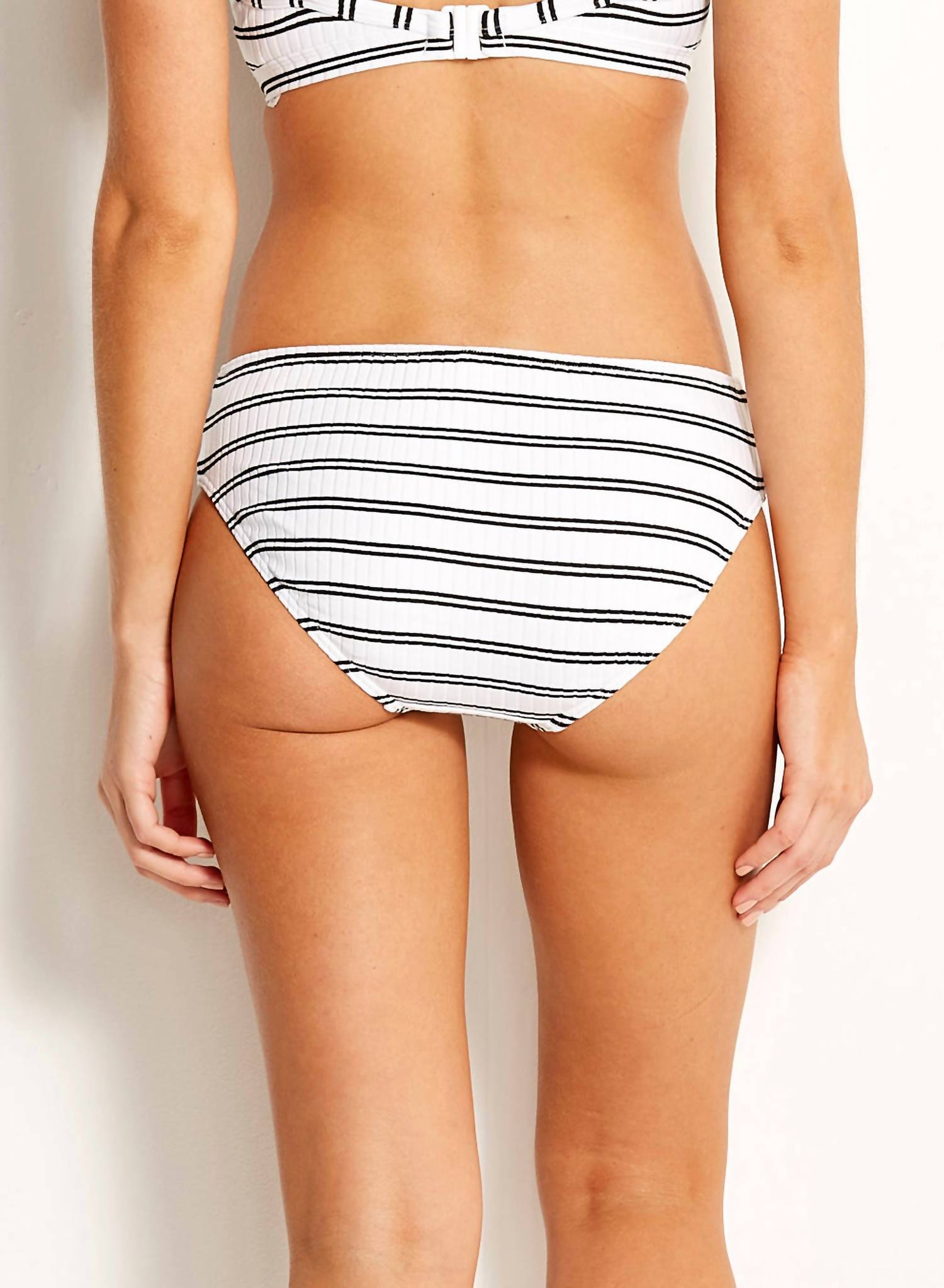 Dream of your next beach getaway in this cute little number. Pair with strappy sandals, a floppy hat, and an oversized tote to complete the perfect vacation look. Enhance your beach day wardrobe with the Seafolly Multi Strap Hipster Bikini Bottom in Inka Stripe. Crafted from 90% polyester and 10% elastane, this bikini bottom offers full rear coverage in a ribbed texture for a comfortable fit and stylish look. Designed for women, its vibrant stripe pattern is a chic choice for any beach outing. Care instructions include hand washing in cold water.