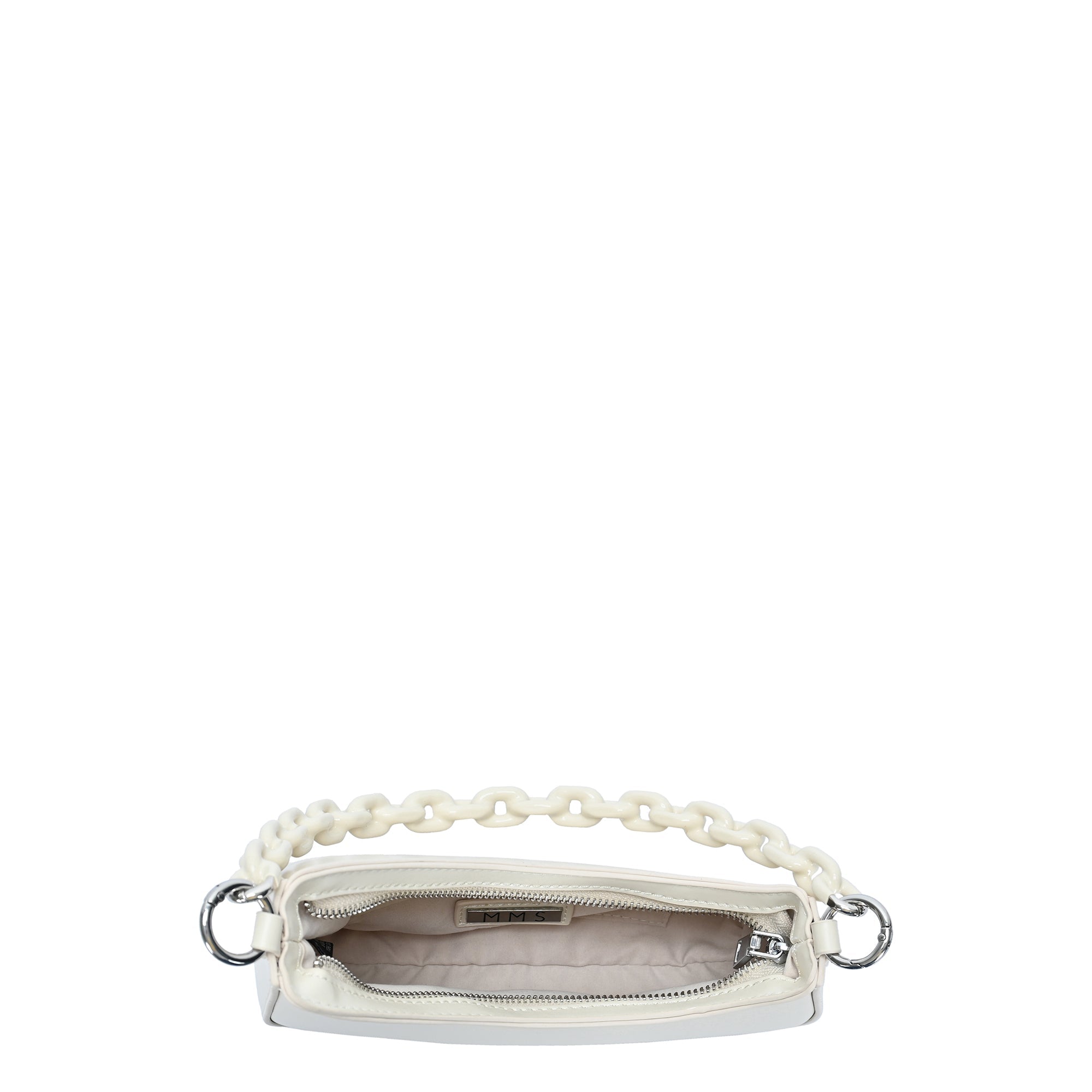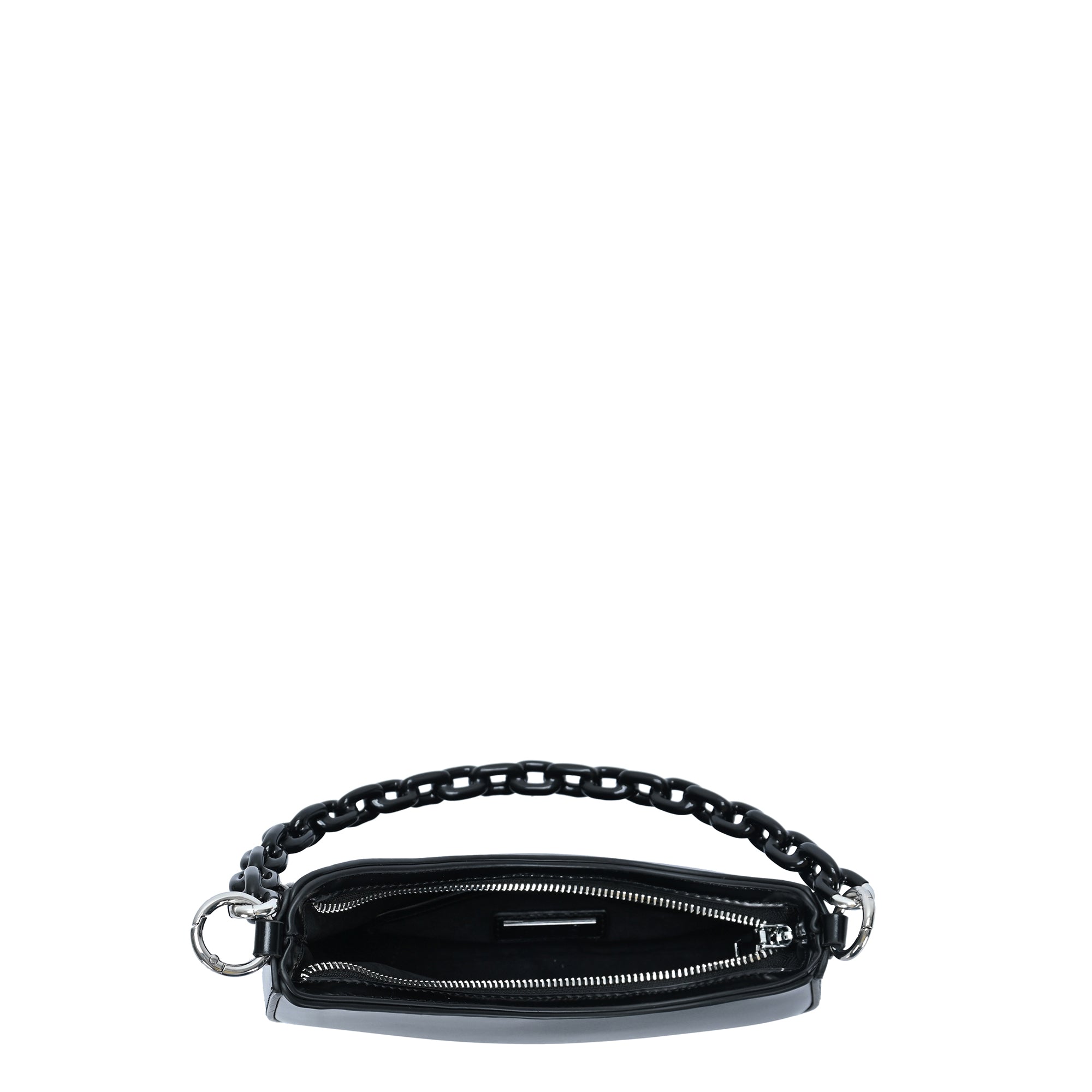 The Selma Chain Link Shoulder Bag brings edgy sophistication to your wardrobe with its trendy asymmetrical silhouette and metal-coated chainlink strap. Crafted from smooth vegan leather and finished with sleek rhodium hardware, it features a secure zipper closure and interior slip and zip pockets for stylish organization.