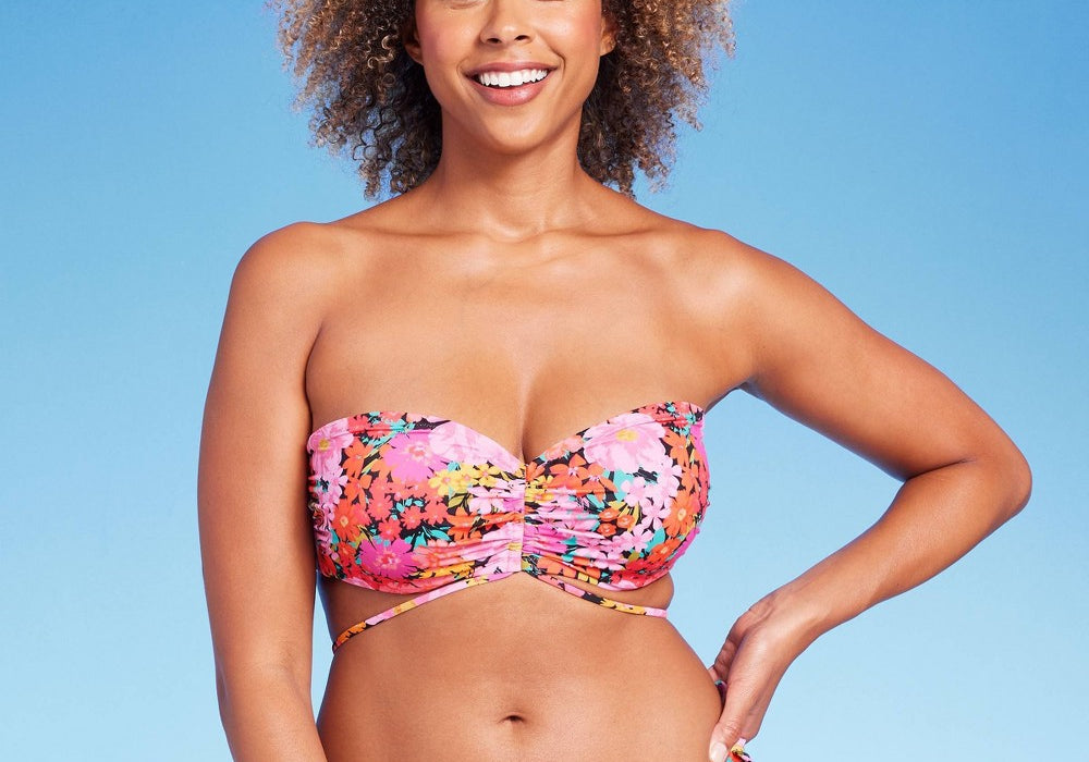Amp up your closet for your next beach vacation with this Strappy Bandeau Bikini Top from Shade & Shore?| The bikini top features a bandeau cut with center cinch and strappy detailing for a fashion-forward look you?ll love| The bandeau bikini top is made from a soft fabric with added spandex that offers you flexible movement whether lounging poolside or taking a stroll along the shore| Underwire removable padded cups let you adjust to your preferred level of coverage| while the removable halter strap that can be attached for a second styling option| Simply pair with a variety of bikini bottoms to create swim looks you're sure to love