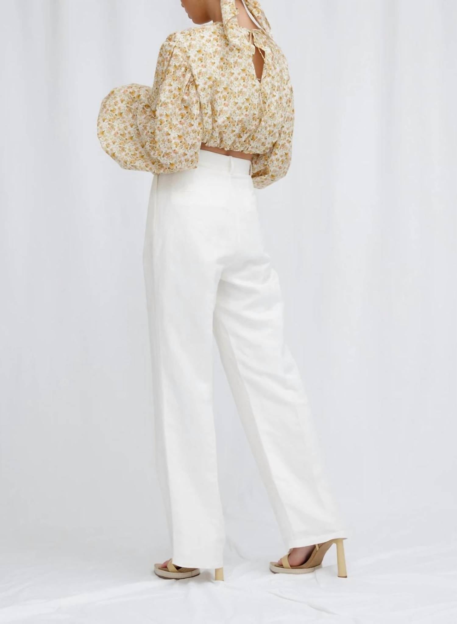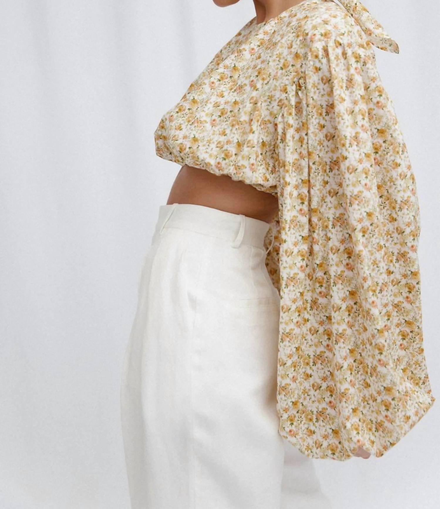 Embrace a hint of boho chic with the Asta Balloon Sleeves Shirt by SIGNIFICANT OTHER, styled in a captivating Rosalie floral print. This long-sleeve shirt, crafted from 100% cotton, presents exaggerated balloon sleeves, a tie at the neck, and an elastic waistband for a playful yet sophisticated look. Its cropped length and elastic cuffs add to its charm while offering comfort and dexterity. Care is simple with machine wash and tumble dry guidelines.
