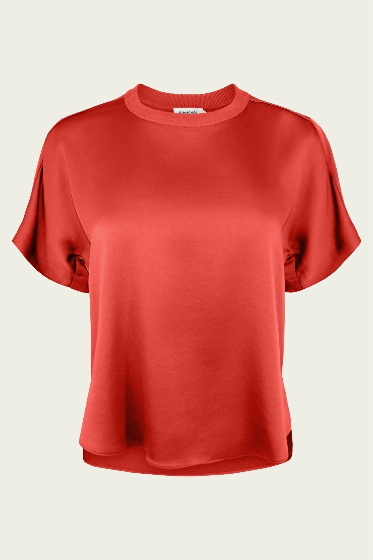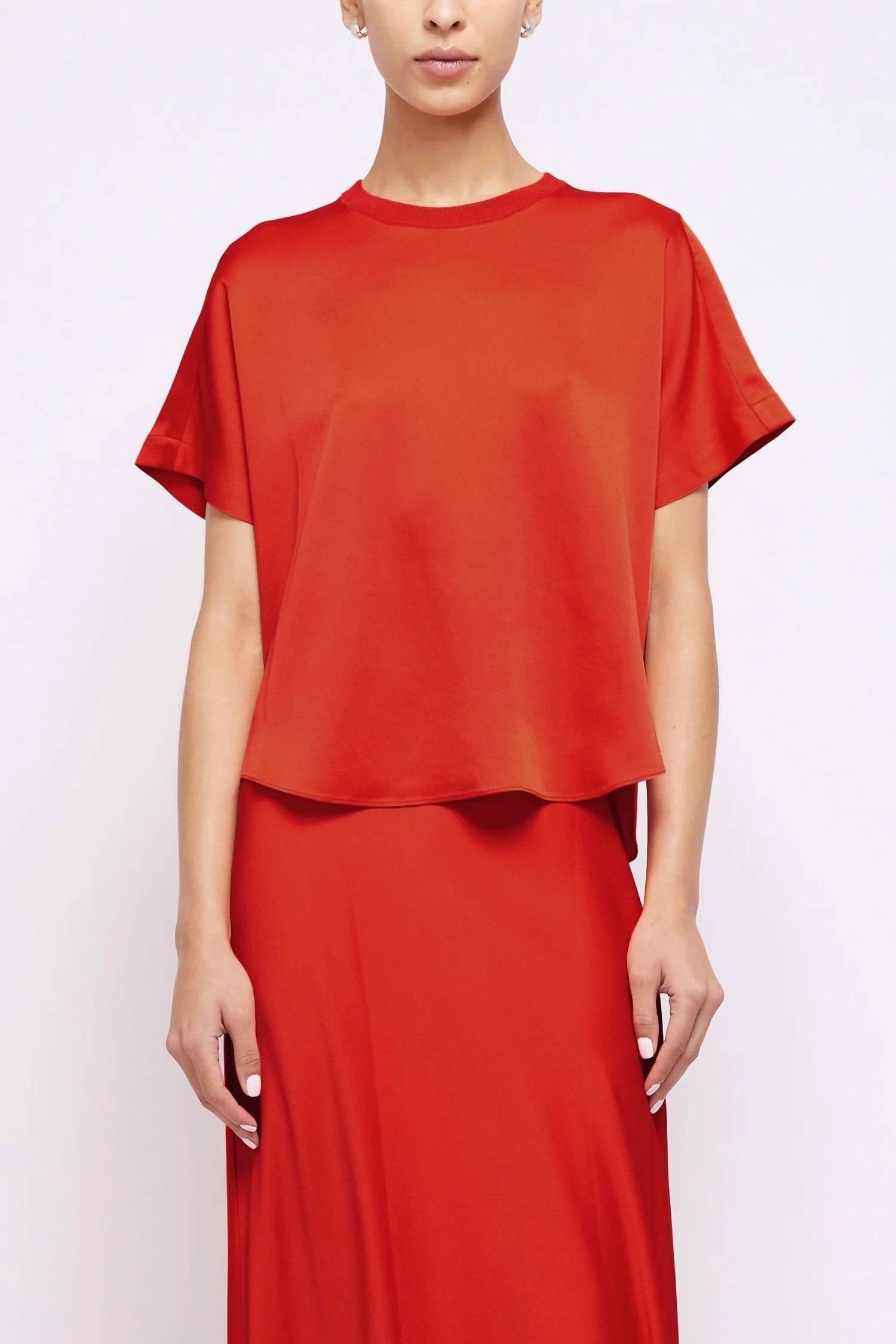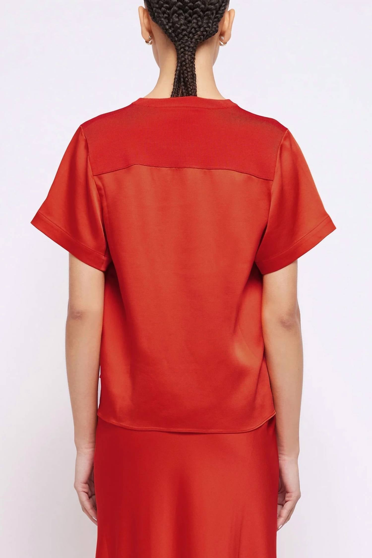 This short-sleeve tee is crafted from a combination of 89% Acetate and 11% Polyethylene, with an additional 100% Rayon combo for added flair. This pullover style is carefully imported and designed with an effortless crewneck for a relaxed fit. Dry clean only.