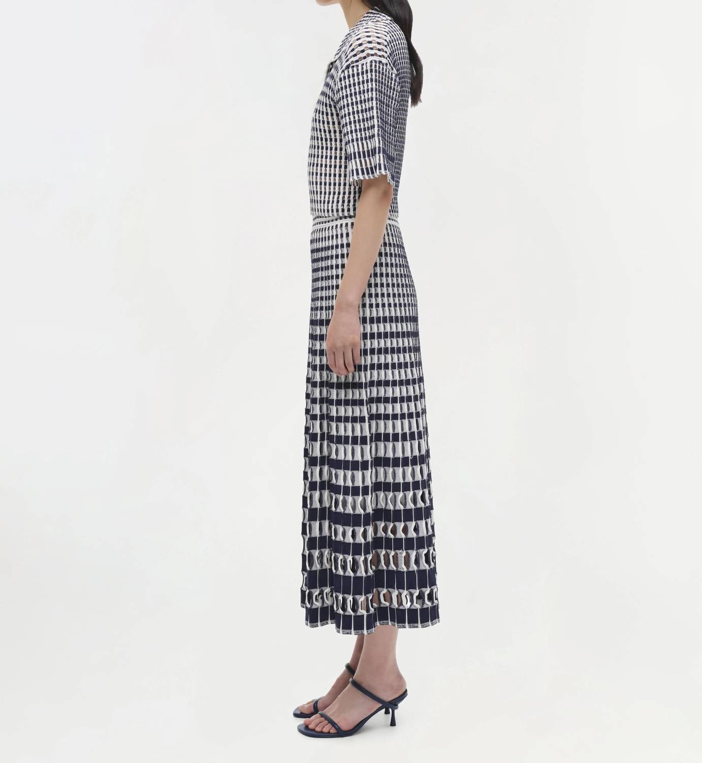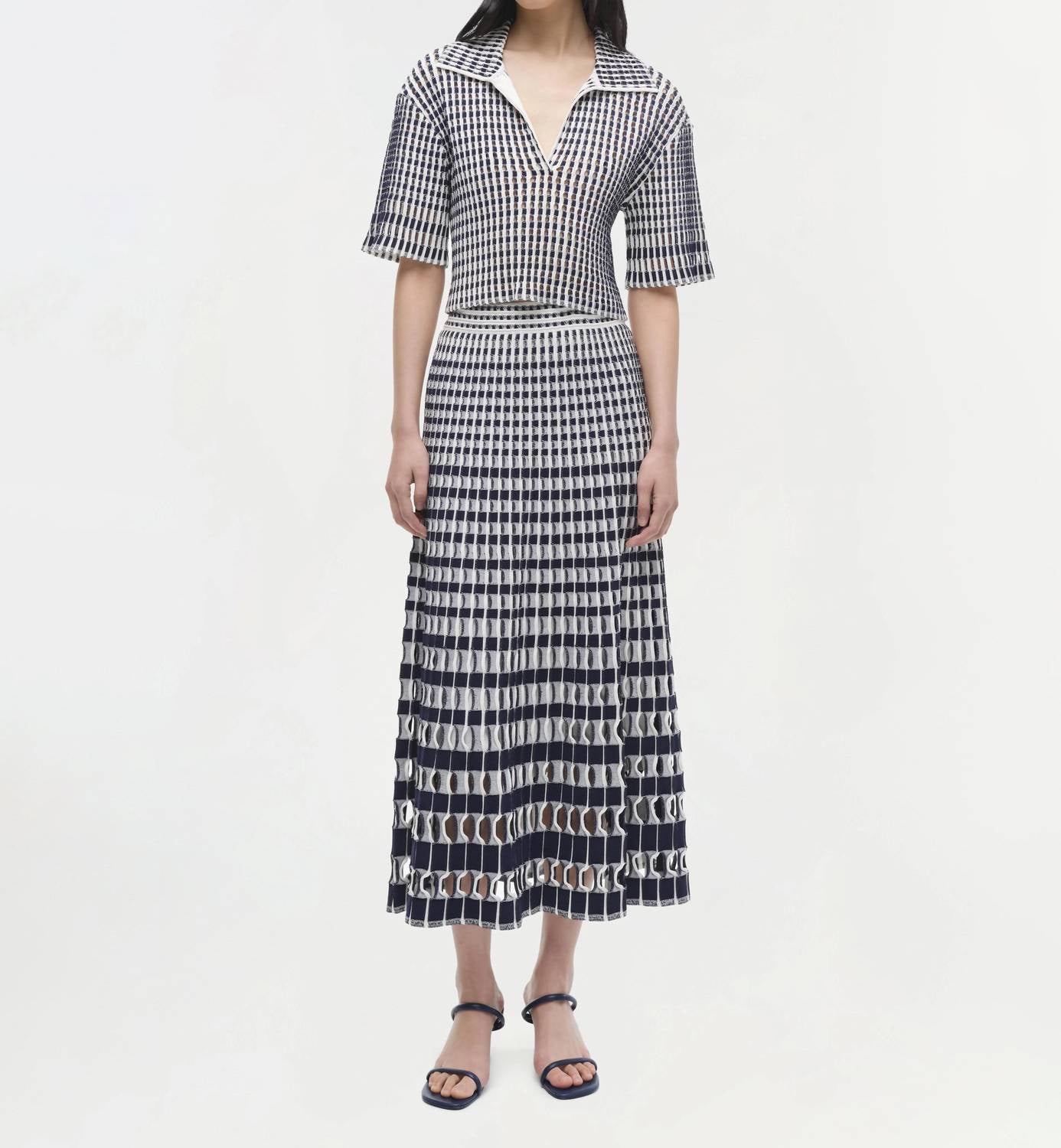 Pair this crop top with your favorite high-waisted jeans or maxi skirt. Combine playful gingham patterns with modern style in the Adley Gingham Knit Cropped Polo by SIMKHAI, a must-have for your summer wardrobe. Tailored with short sleeves and a sleek collar, this grey top is crafted from a blend of 83% Rayon and 17% Polyester. With a convenient pull-on closure, enjoy its effortless fit. Imported and care is simple with dry clean only instructions.