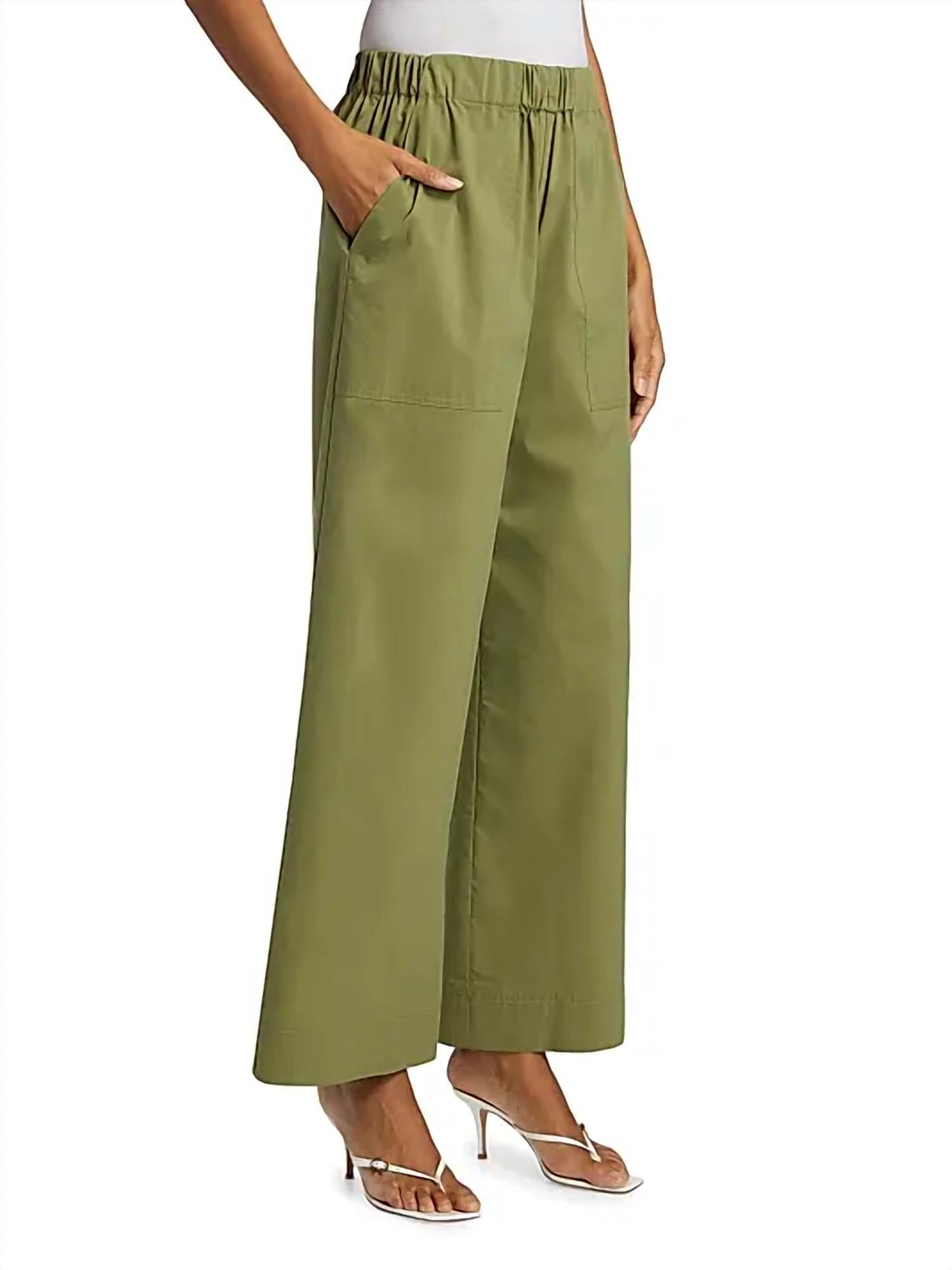 Effortlessly chic, the Arden Cotton-blend Wide-leg Pants by SIMKHAI are perfect for day-to-night transitions in solid olive. With a high rise and relaxed fit, these pants feature a comfortable pull-on closure with an elastic waistband that enhances their stylish wide-leg silhouette. Crafted from a breathable cotton blend of 58% Cotton, 37% Polyamide, and 5% Elastane, they offer both flexibility and comfort. Care is simple as they are machine washable, making them an ideal choice for any wardrobe.