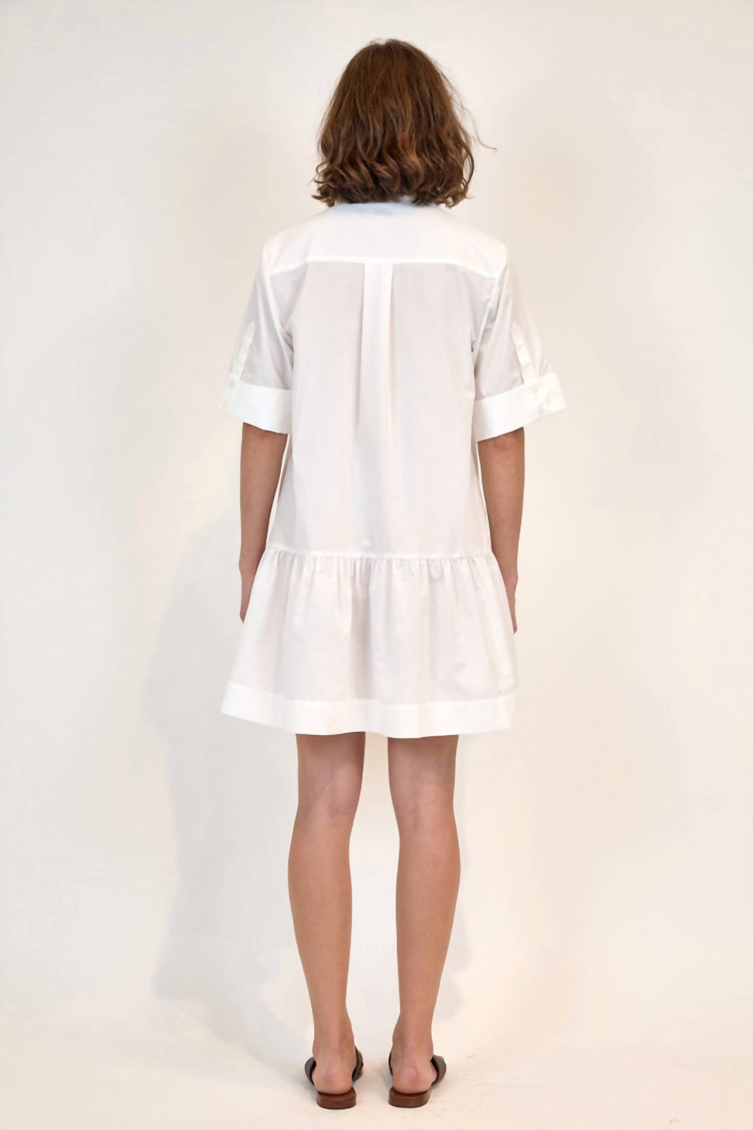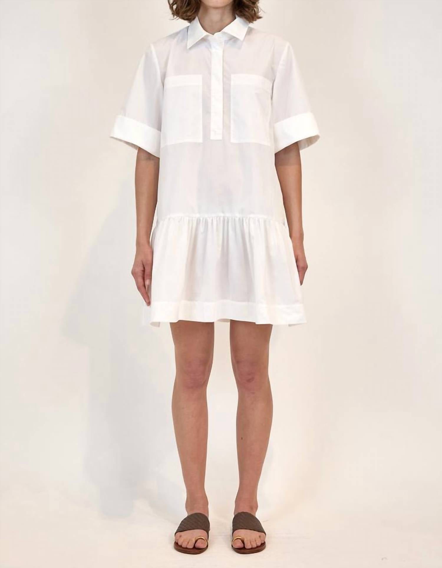 The perfect mini dress for those warmer months. Elevate your style with the SIMKHAI Cris Shirt Dress, a chic piece designed for both comfort and elegance. This women's shirt dress features elbow sleeves and is expertly crafted from 100% Cotton, offering a breathable feel with the perfect silhouette for spring. The dress falls above the knee and is finished with a classic collar and practical button closure, providing a polished look ideal for workwear or vacation. Color: White. Care instructions: Machine wash.