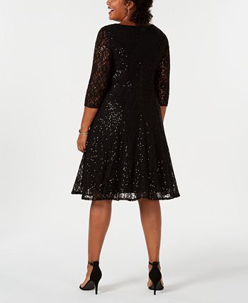 SL Fashions Women's Sequined Lace Dress Black Size 18W