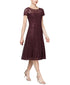 Allover stretchy sequined lace|Illusion round neckline, straight at bust; hidden back zipper with hook-and-eye closure, back keyhole hook-and-eye closure|Midi length; A-line silhouette|Approx. 44-1/2" long from center back to hem. Length is based on size 8 and varies approx. 1/4" between sizes.