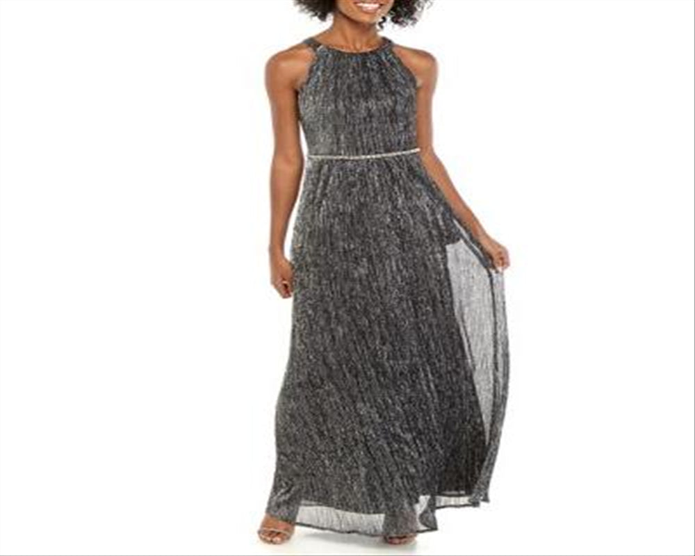 Slny Women's Embellished Sleeveless Halter Maxi Sheath Evening Dress Silver Size 16
