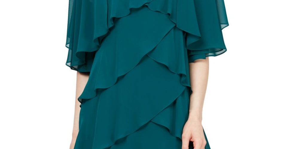 Slny Women's Teal Ruffled Short Sleeve Jewel Neck Above the Knee Sheath Formal Dress Blue Size 14