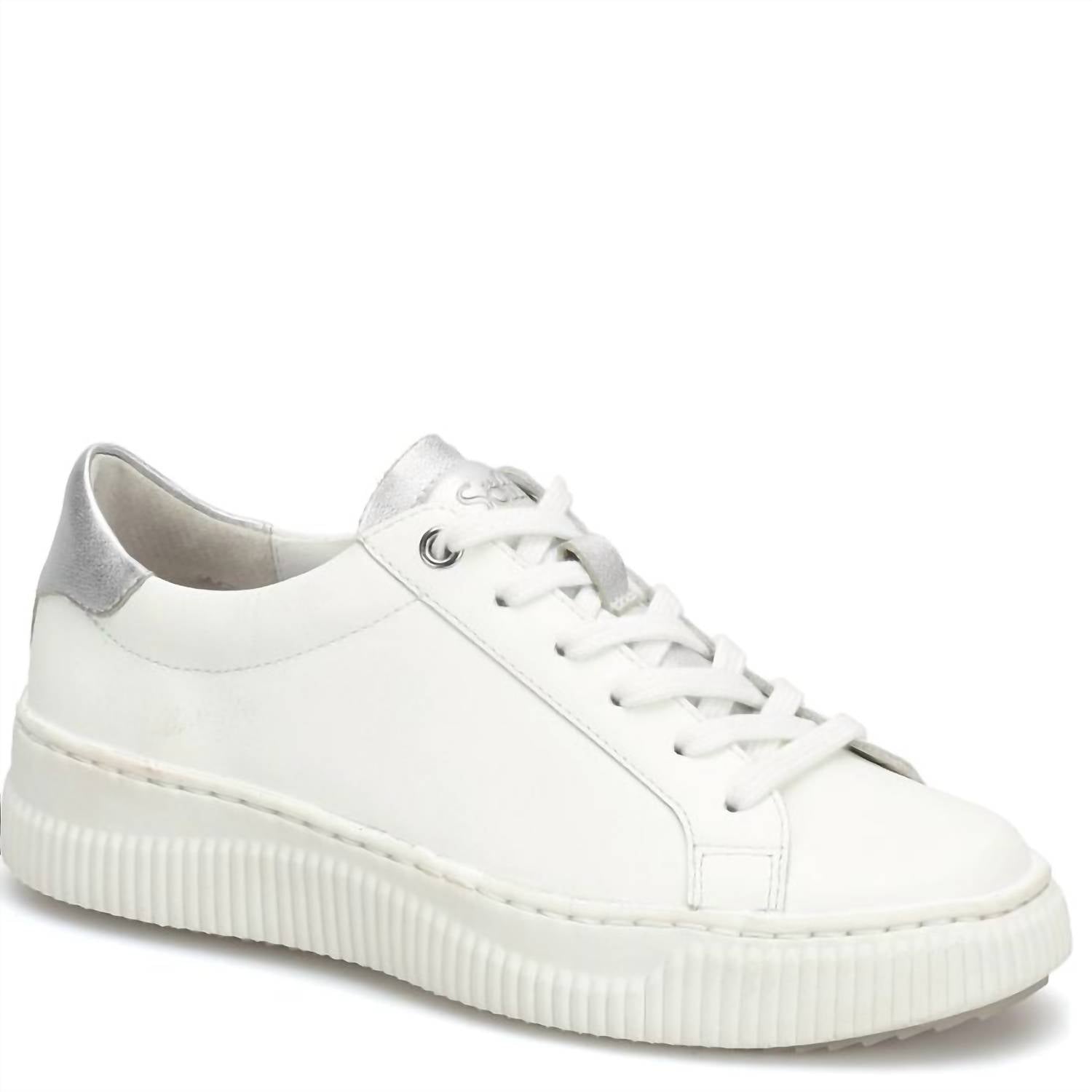 Elevate your casual wardrobe with the Women's Fianna Sneakers by Sofft, a striking combination of style and comfort. Crafted from luxurious full-grain, Italian, or metallic leather with suede accents, these sneakers feature a padded heel collar and a cushioned, leather-lined footbed with arch support. Designed with a lightweight and flexible TPR outsole, these sneakers provide an added 1.5-inch lift with a platform heel. The athleisure trend ensures they're perfect for travel or any summer occasion, and their round toe shape completes the effortlessly cool aesthetic.