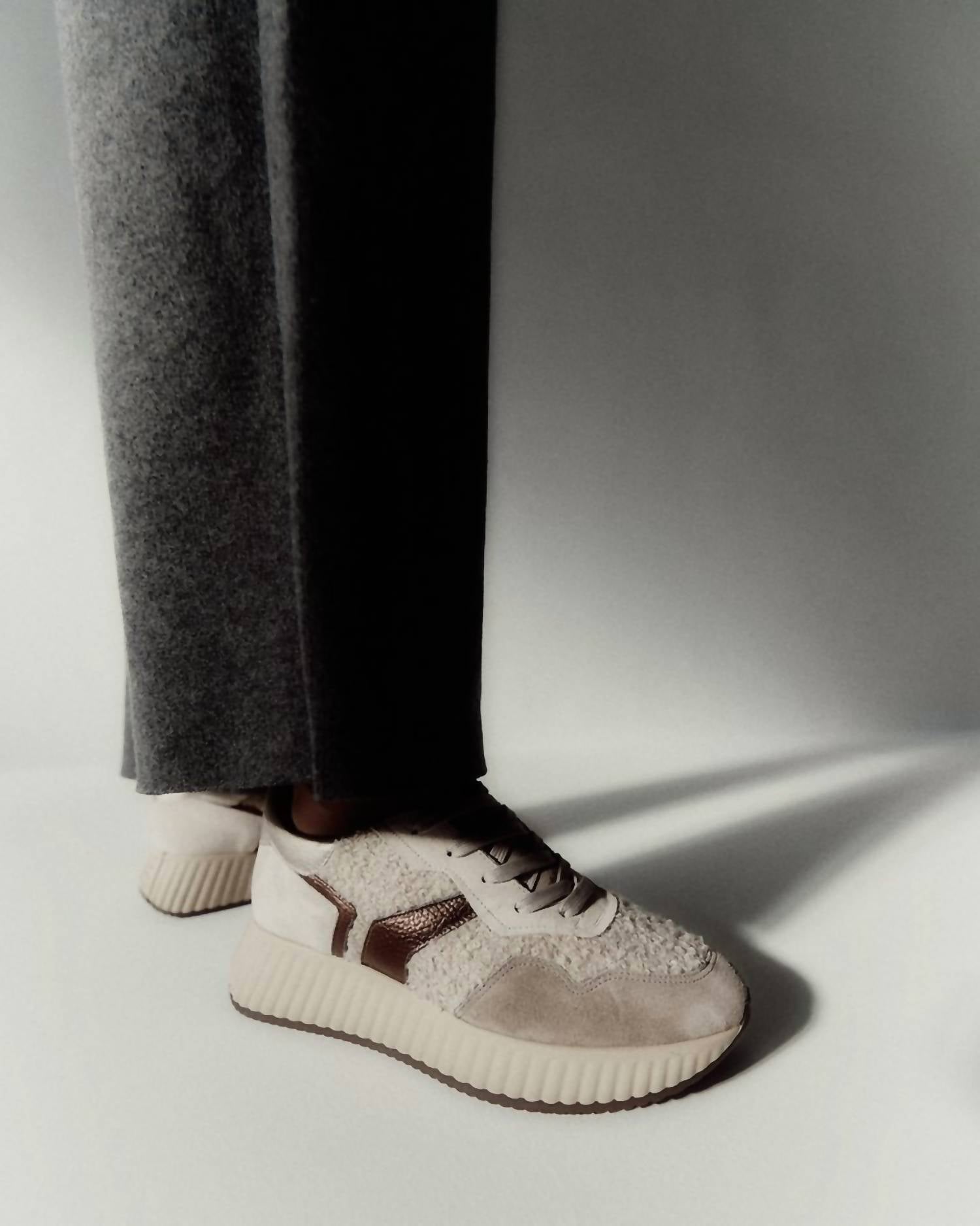 Elevate your sneaker collection with the Women's Alanza Sneaker by Softwaves, presented in a chic creme hue. Crafted from a blend of premium suede and textured fabric, this shoe promises both style and comfort. It features a cushioned heel for optimal arch support and soft leather for added luxury. The design includes a removable insole and chrome-free lining, with a low heel height of 4.5cm (1.77 inches).