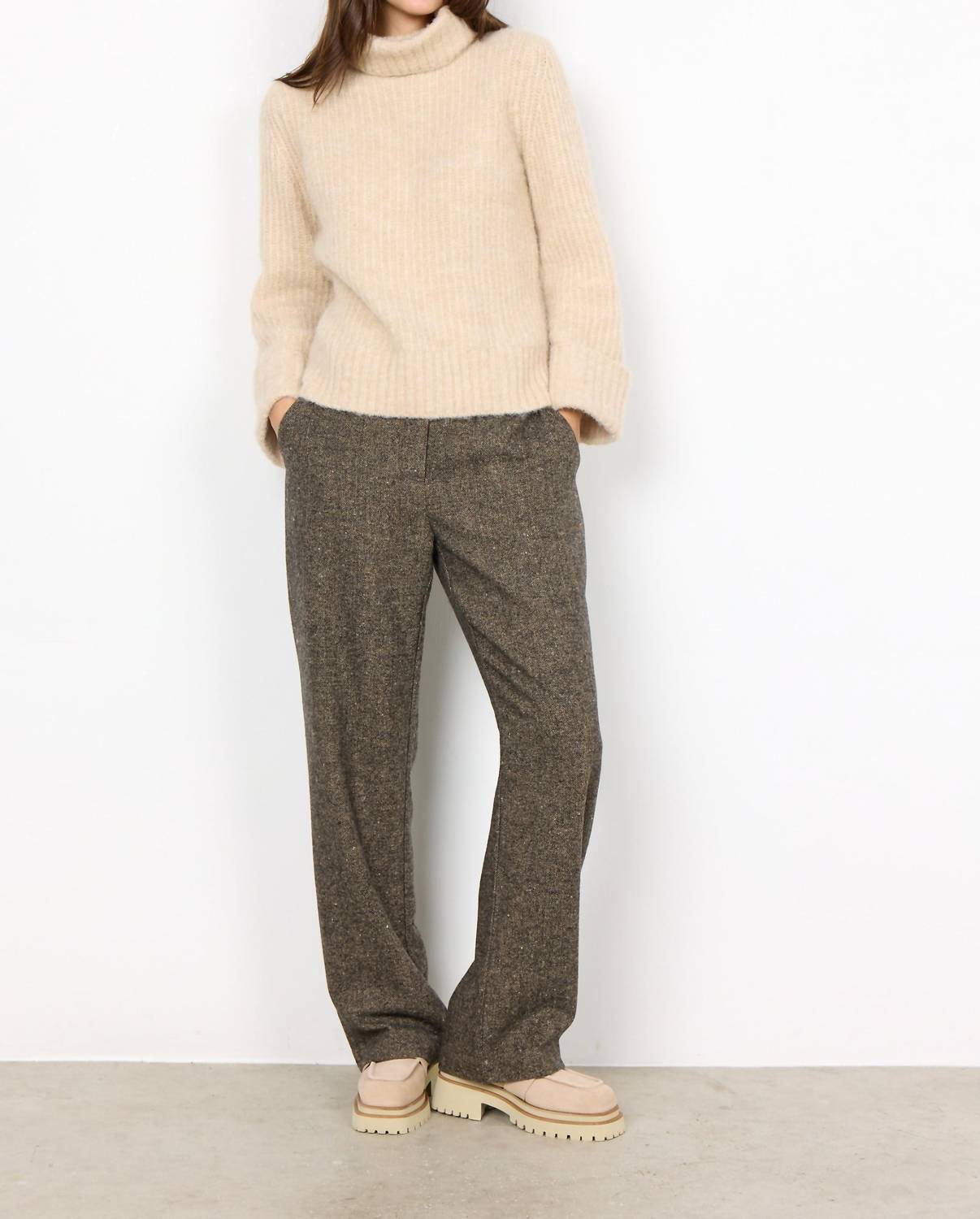This long-sleeve pullover features a sophisticated turtleneck and a textured rib knitted pattern, crafted from 76% Polyester, 21% Acrylic, and 3% Elastane. Closure is a convenient pull-on style, ensuring ease and comfort. To maintain its quality, hand wash cold and lay flat to dry.
