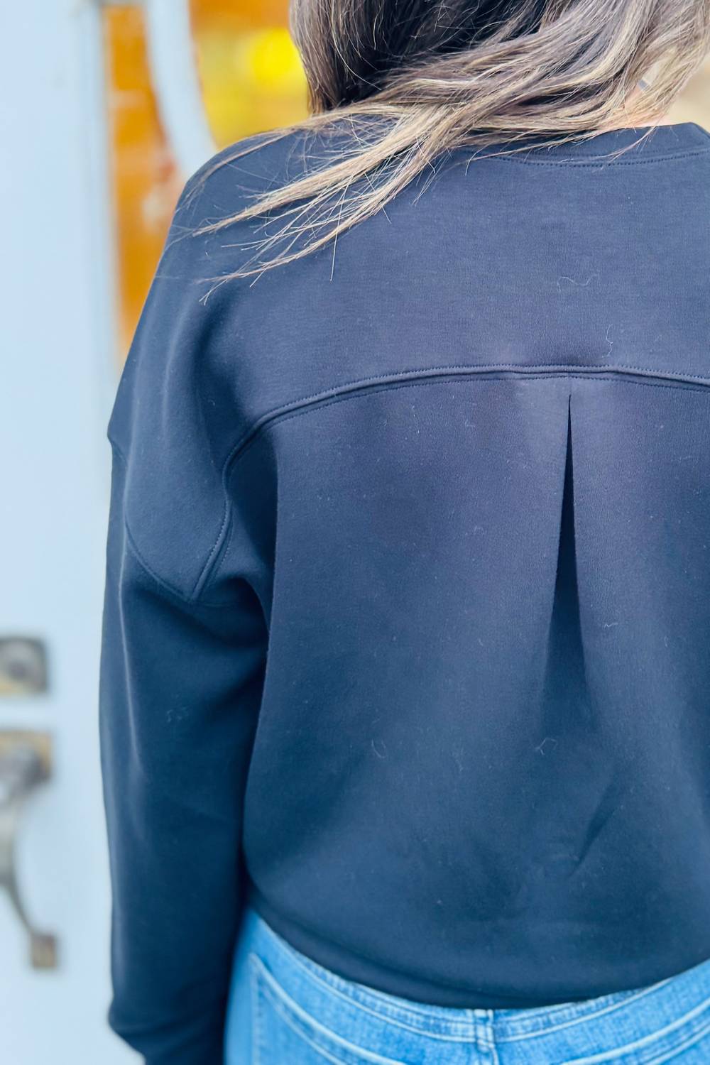 Elevate your comfort with the Spanx AirEssentials Crewneck Pullover Sweater in Very Black, a versatile wardrobe staple for women. This long sleeve pullover is crafted from a blend of 47% Modal, 46% Polyester, and 7% Elastane, offering a lightweight, luxuriously soft feel thanks to its unique spacer fabric. Designed for optimal air flow and circulation, this solid pattern sweater ensures comfort with its four-way stretch and pull-on closure. To maintain its silky smoothness, machine wash cold and tumble dry low.