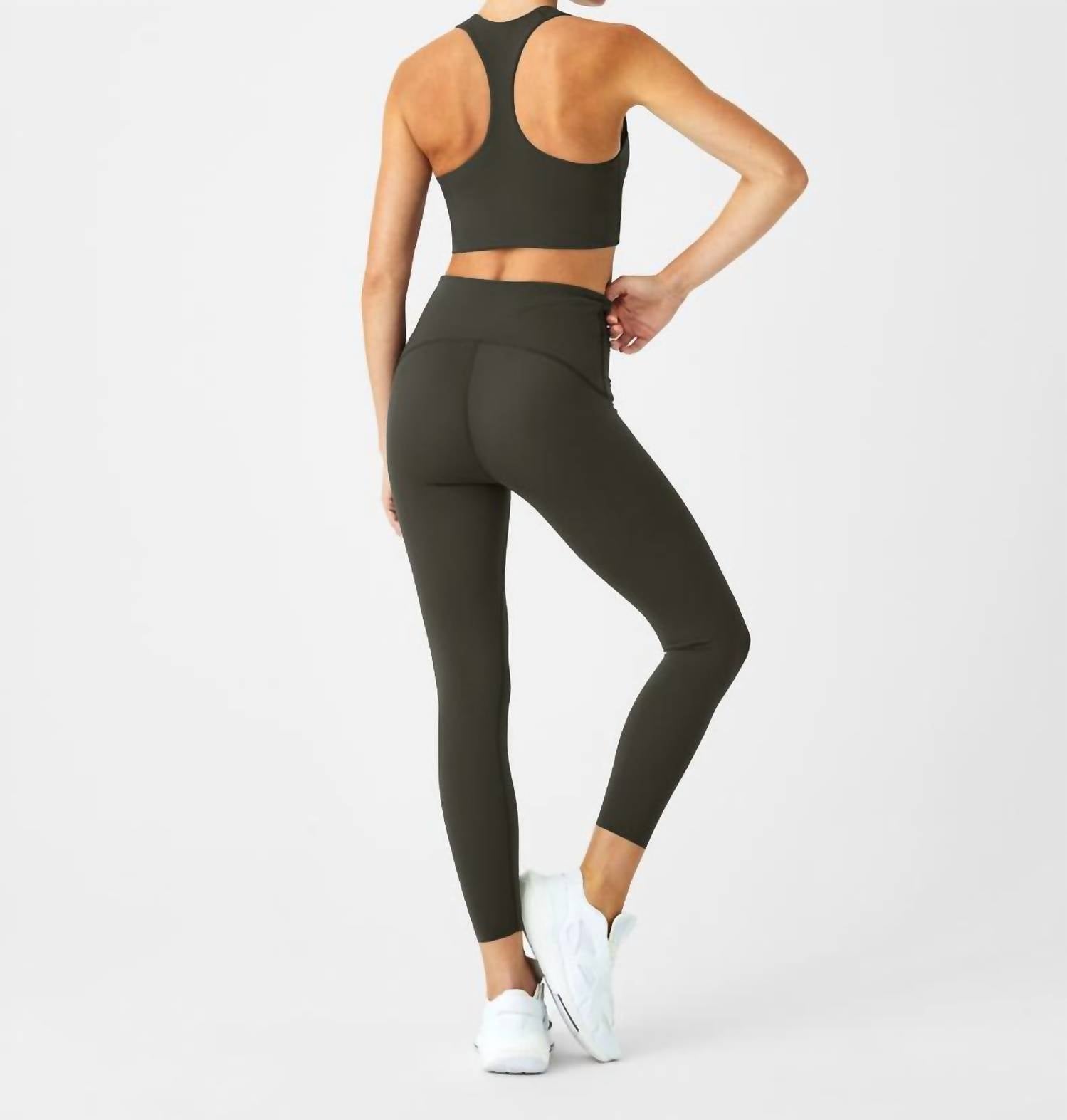 You'll be reaching for this best-selling legging all season long. Experience the Spanx Booty Boost Active 7/8 Leggings in Dark Palm, crafted for both style and performance. These high-rise leggings are made from 81% polyamide, 19% lycra, offering sculpting support with their signature contoured waistband and innovative design. With a 25" inseam, they feature a pull-on closure, hidden waistband pocket, and breathable, sweat-wicking material, ensuring comfort during every workout. Ideal for summer and perfect for athleisure, these leggings enhance your silhouette while providing a flattering fit.