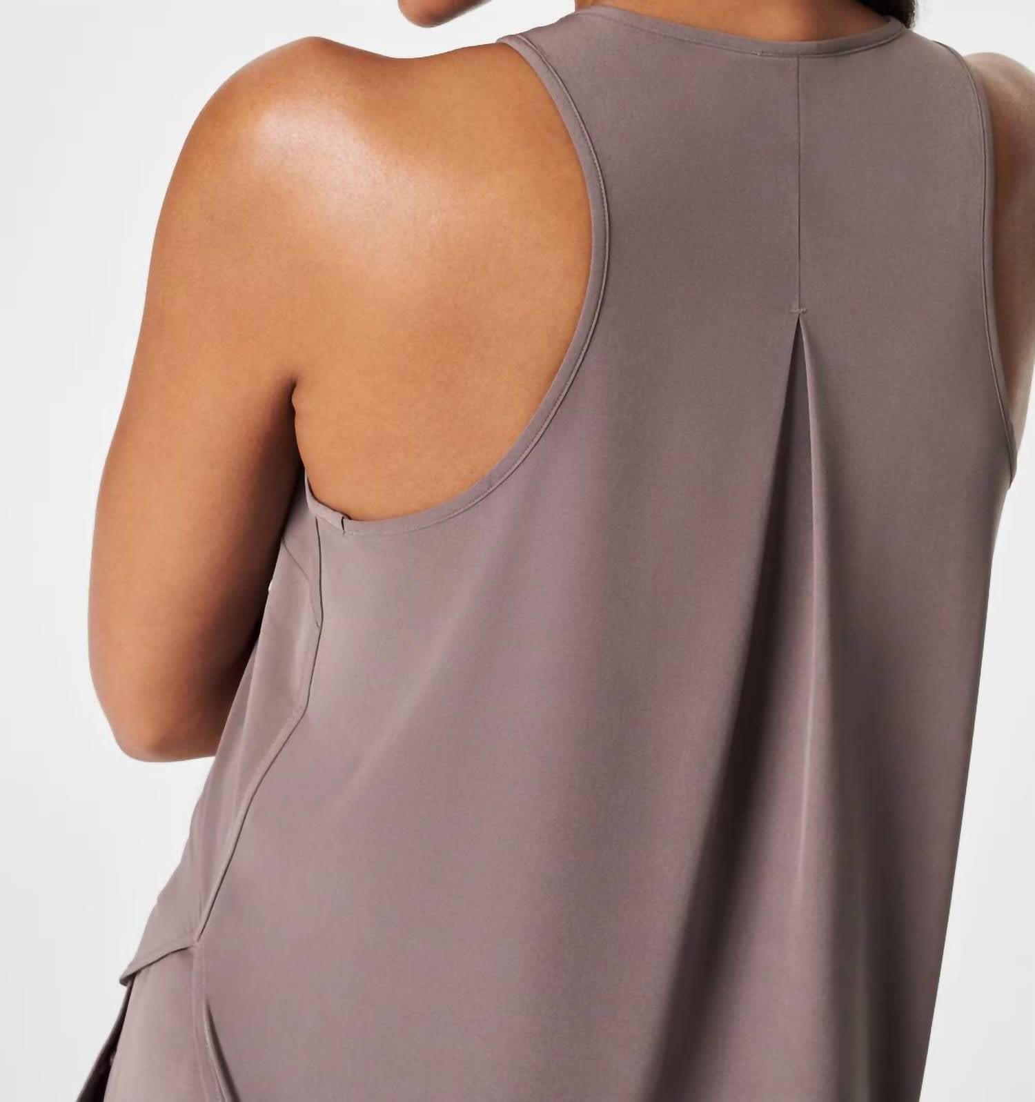 This classic tank top is perfect for layering and cute enough to wear on its own. Introducing the Spanx Casual Fridays Curved Hem Tank Top, a stylish and functional addition to your activewear collection. This sleeveless tank in smoke color features sweat-wicking fabric and a 4-way stretch for ultimate comfort and mobility. Crafted from 88% polyester and 12% elastane, it offers a relaxed fit with a unique curved hem providing extra coverage in the back. Closure: Pull-on. Care: Machine wash, tumble dry.