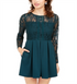 Speechless Women's Lace Zippered Long Sleeve Jewel Neck Mini Fit Flare Party Dress Green Size Medium