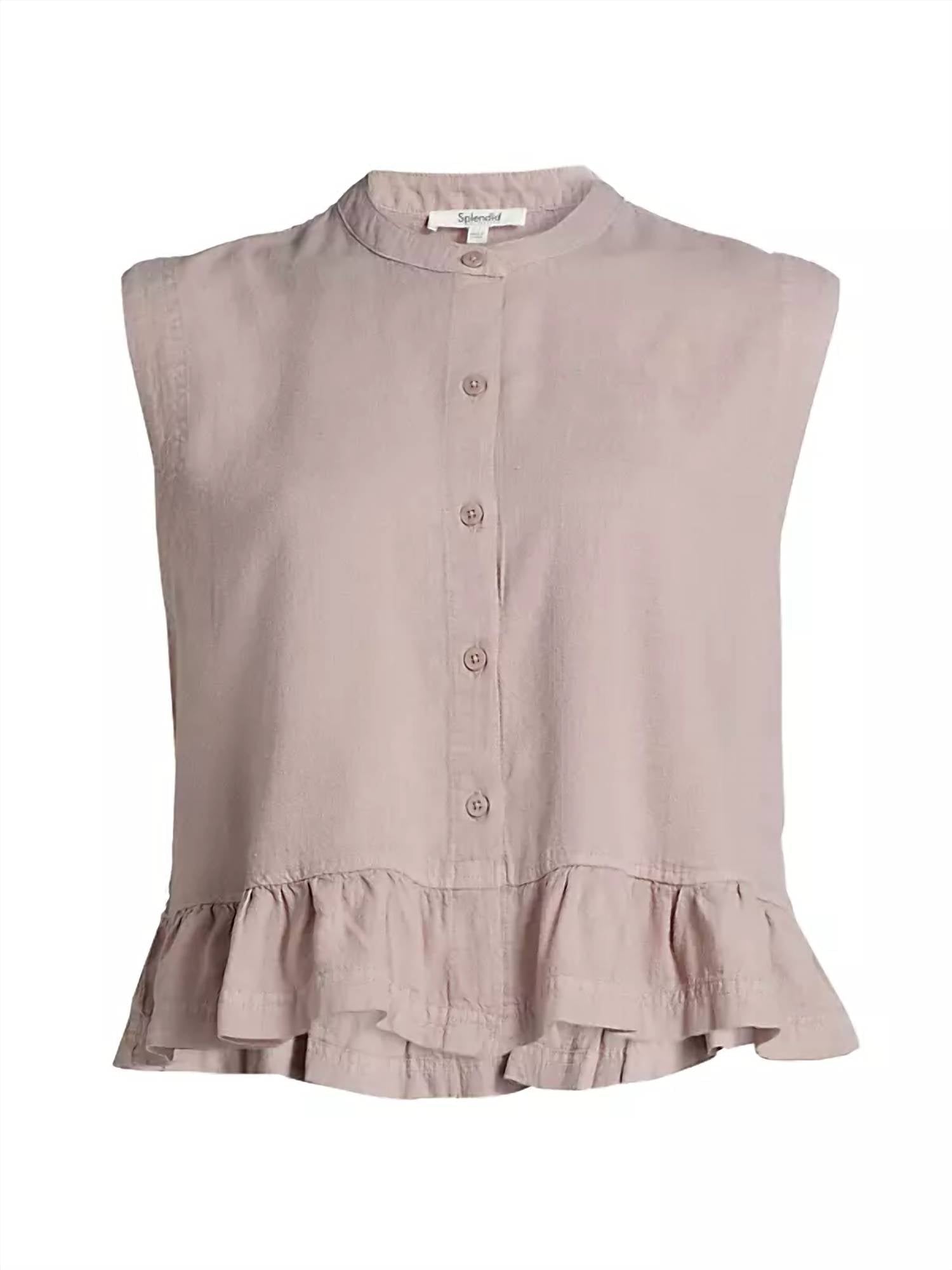 The Alice Button Down Tank by Splendid is a stylish addition to any wardrobe in a rattan hue. This sleeveless top features a classic collar and a button closure, offering a chic and sophisticated look. Crafted from a premium linen blend, it measures 20.5 inches in length. Care for this solid-patterned top is simple with machine wash instructions.