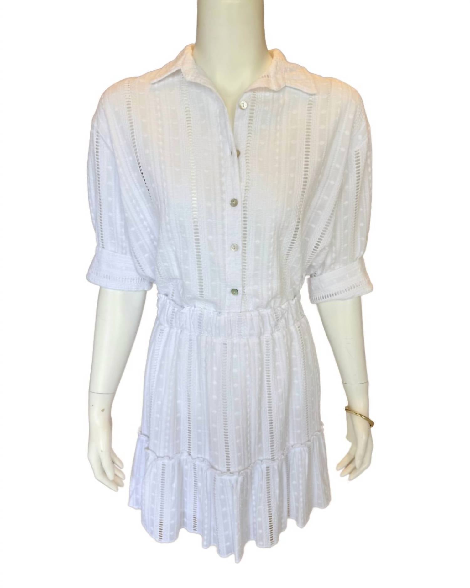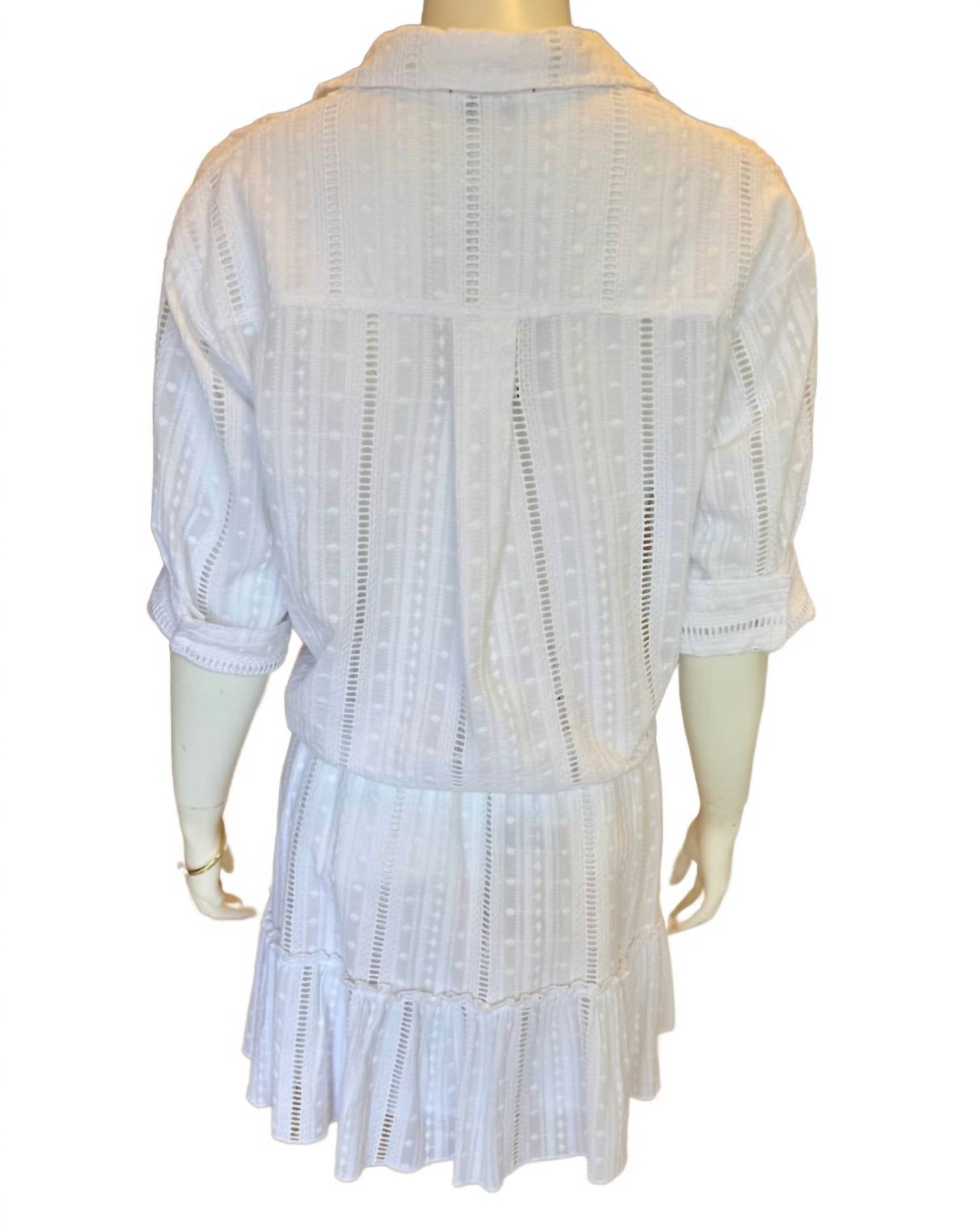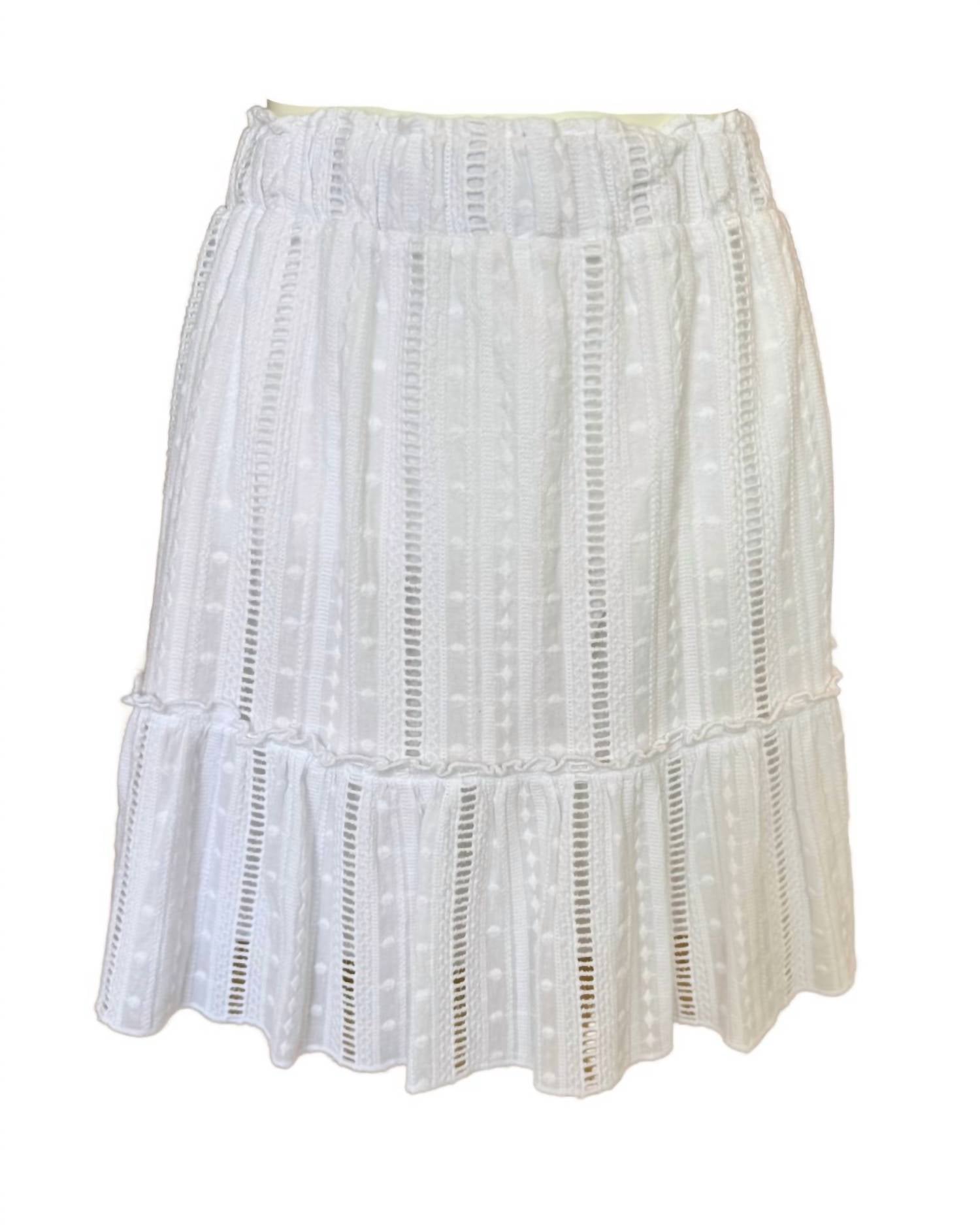 Introducing the Faith Embroidery Lace Skirt by STARKx, a stunning piece for your summer wardrobe in elegant white. This women's mini skirt is crafted from a textured 97% polyester and 3% spandex blend, offering a form-fitting yet comfortable design. With a convenient pull-on closure, it effortlessly combines style with ease of wear, making it ideal for cocktail parties or workwear. Care is simple with machine washing and line drying.