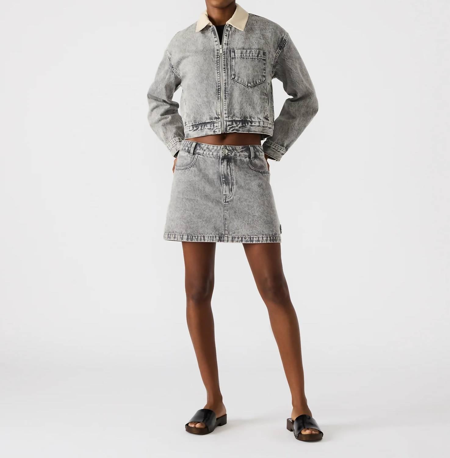 DENIM JACKET WITH A COLLARED DESIGN AND FRONT ZIPPER CLOSURE
