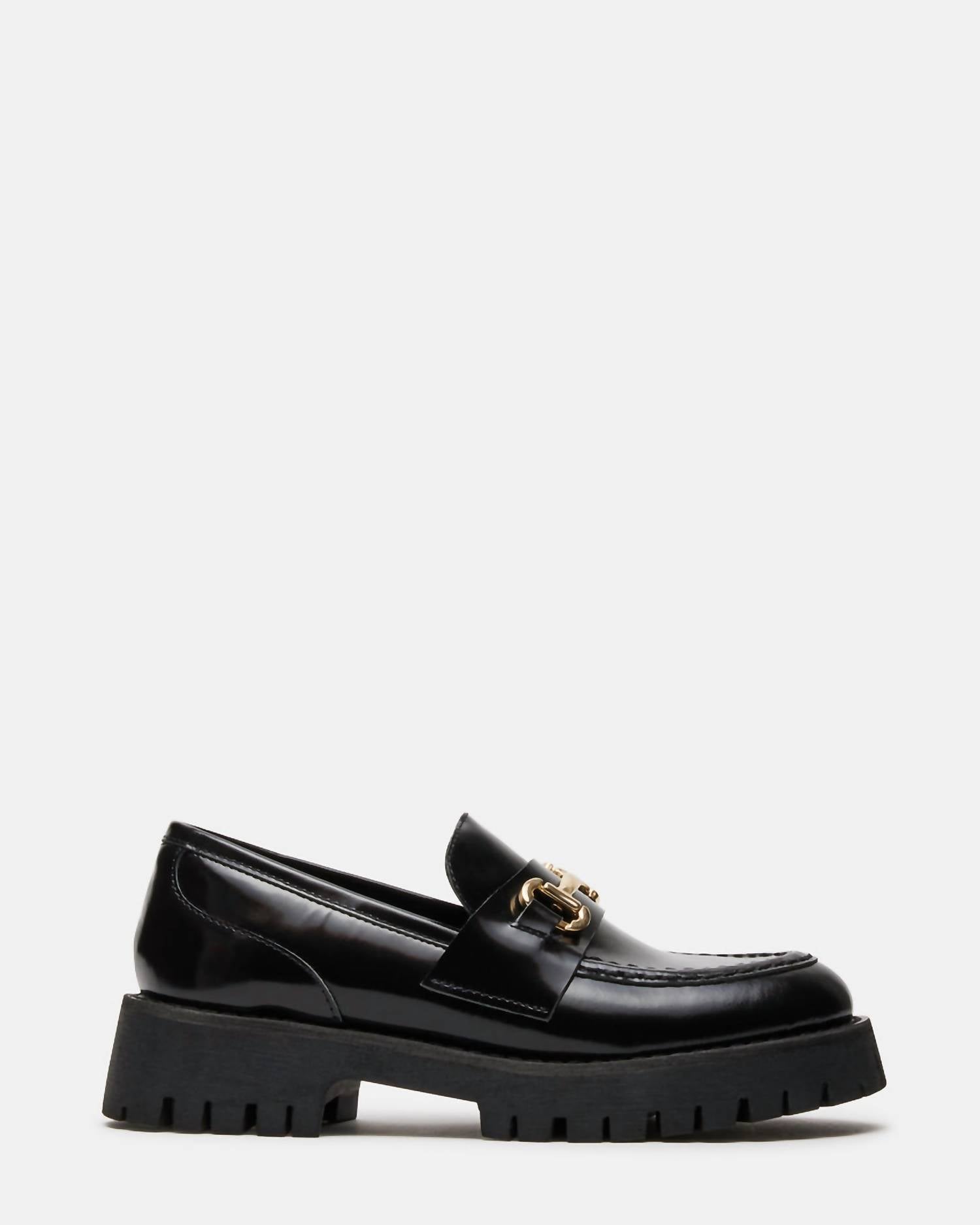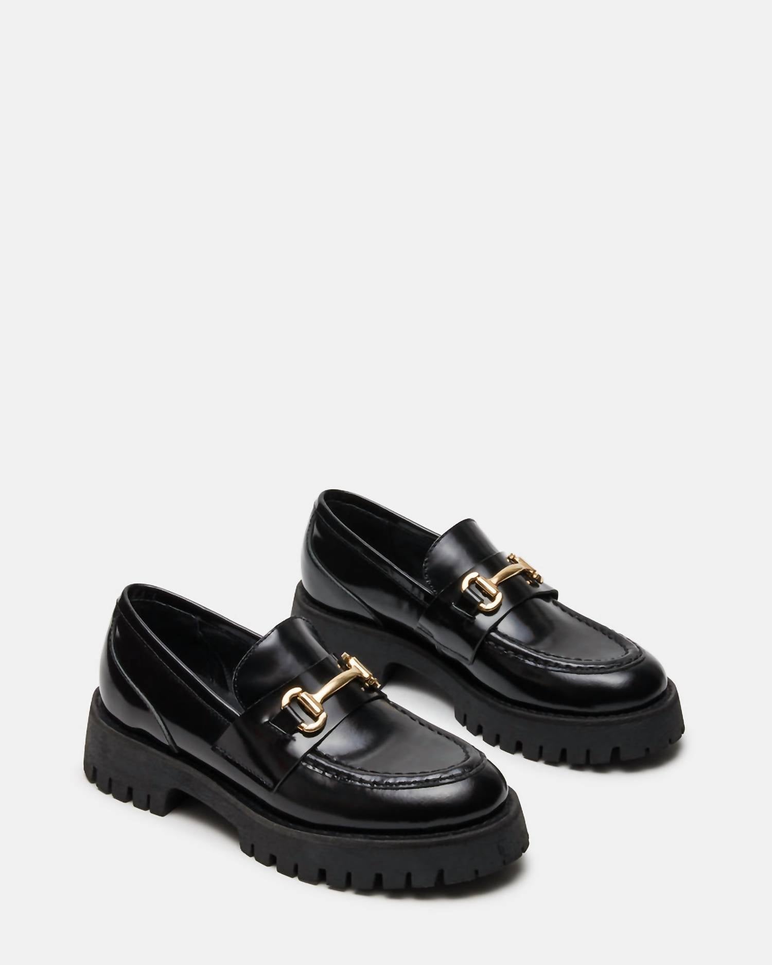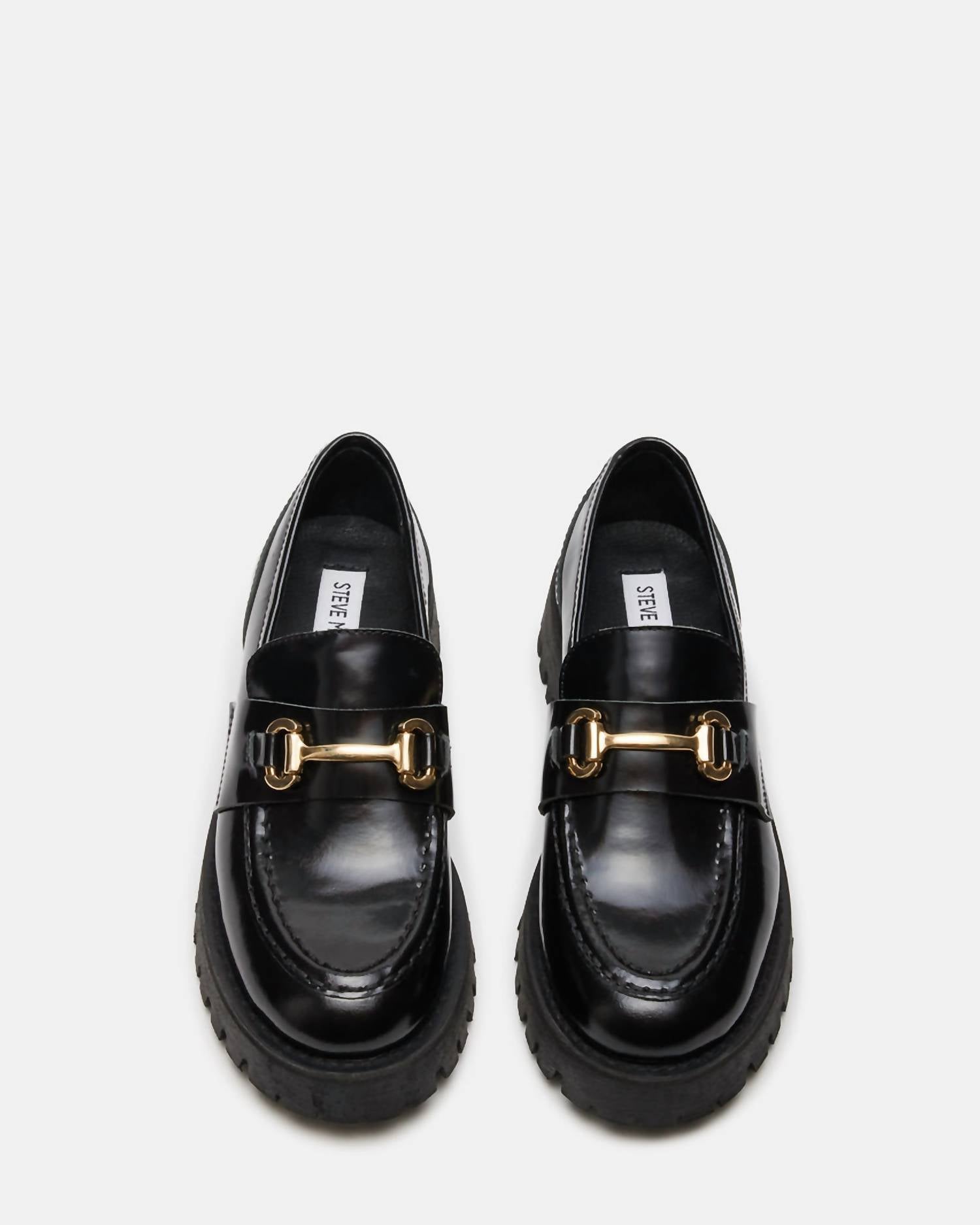 A preppy yet feminine take on the classic loafer. Make a bold statement with these platform loafers featuring a chunky lug sole and classic horsebit hardware. Designed with a 1.5-inch heel and 1-inch platform, they combine timeless style with modern edge. Crafted with a leather upper, synthetic lining, and sole, they offer both durability and comfort.