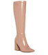 Step into sophistication with the Women's Pointed Toe Flared Heel Knee High Boots by STEVE MADDEN. These tan over-the-knee boots feature a stretchy shaft and a flared block heel for a chic, modern look. Heel Height: 3.5 inches, Toe Shape: Pointed Toe. Closure: Zipper closure, perfect for adding elegance to your fall wardrobe.