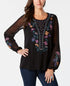 Style & Co Embroidered Blouse Black Size XL