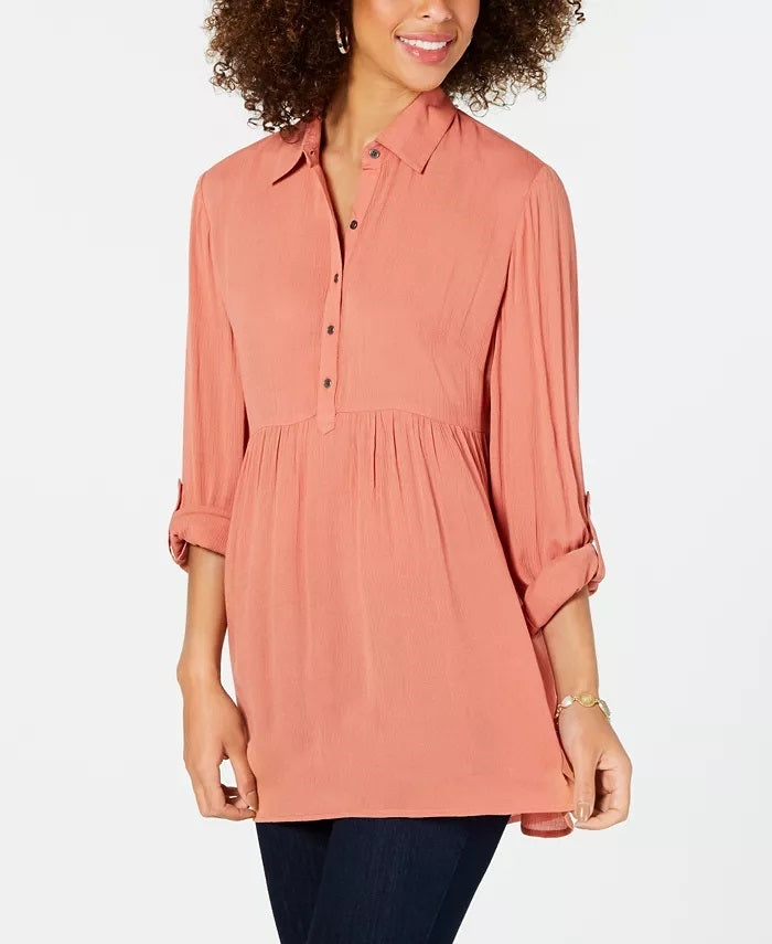 Style & Co Women's Babydoll Tunic Shirt Orange Size Petite Small
