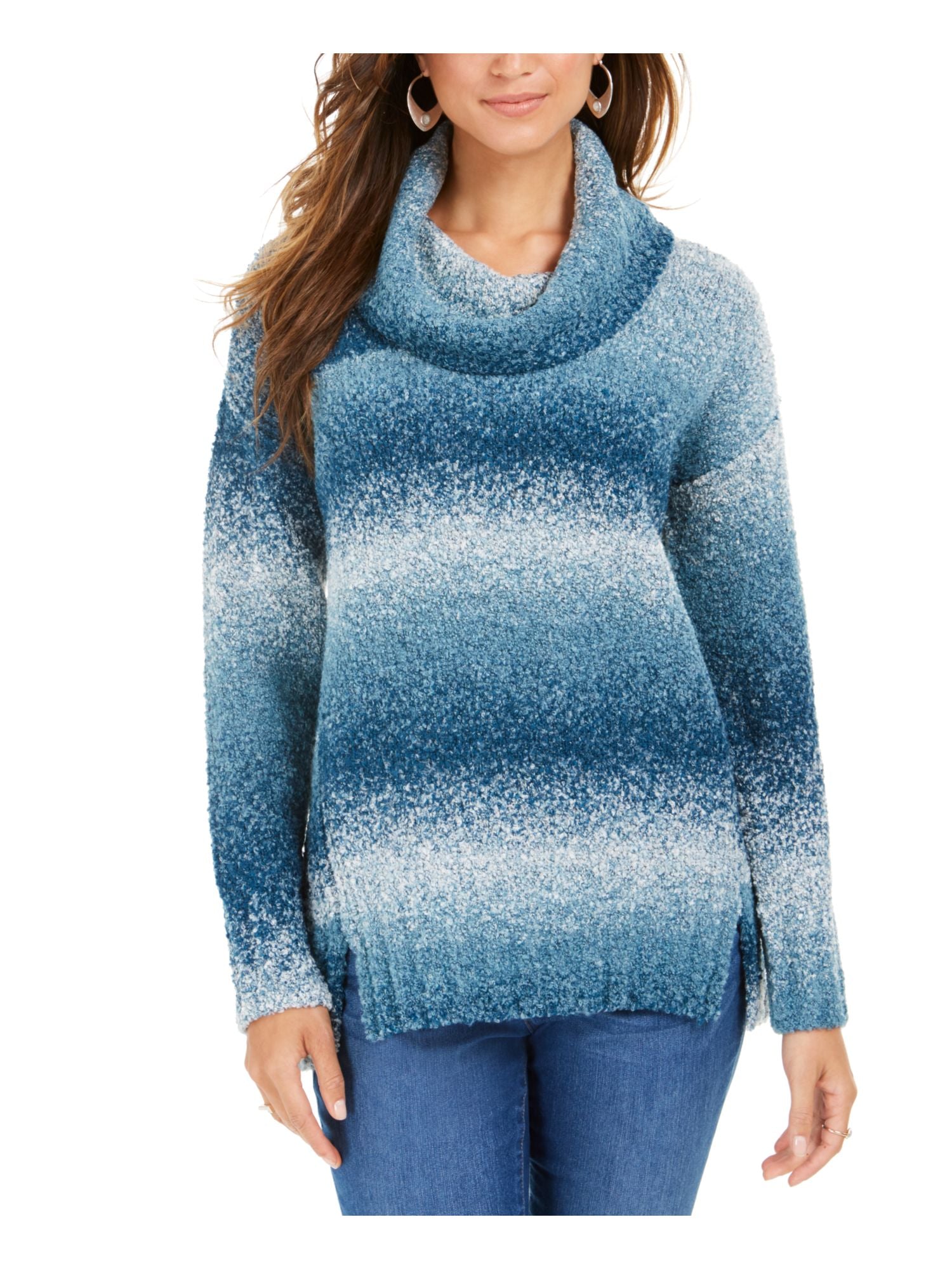 Style & Co Women's Color Block Long Sleeve Turtle Neck T-Shirt Sweater Teal Size Petite Petite