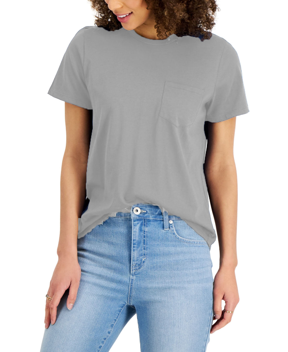 Style & Co Women's Cotton Crew-Neck T-Shirt Gray Size X-Large