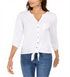Style & Co Women's Cotton Embroidered Tie Hem Shirt White Size Petite XL