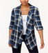 Style & Co Women's Cotton Open Front Plaid Completer Shirt Blue Size 2XL