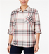 Style & Co Women's Cotton Tab Sleeve Plaid Shirt Black Size Petite X-Large