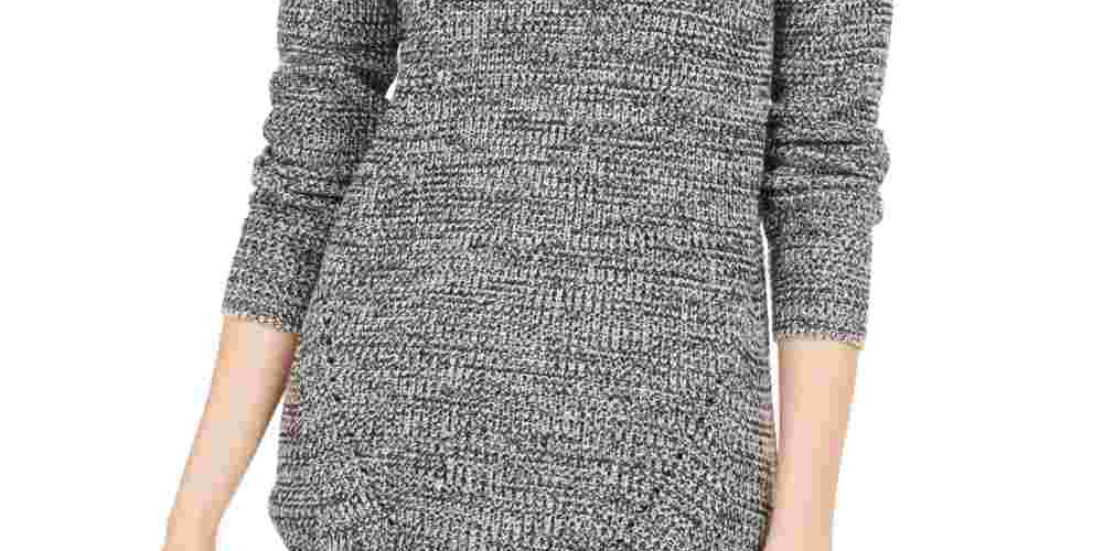 Style & Co Women's Herringbone Long Sleeve Turtle Neck Blouse Sweater Black Size PXL