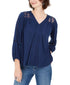 Style & Co Women's Lace-Back Crochet Top Navy Size Large