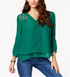Style & Co Women's Layered Hem Crochet Woven Top Green Size Petite M