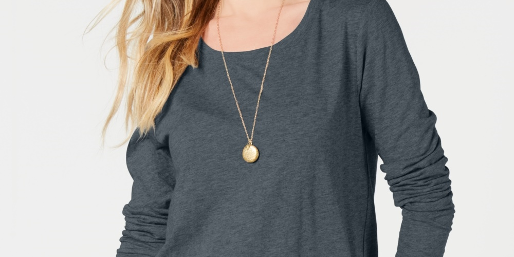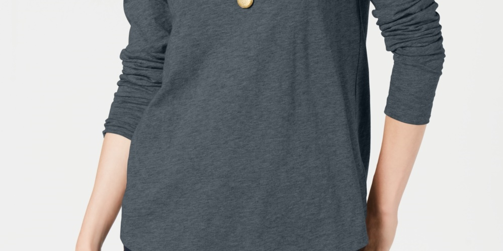 Style & Co Women's Long-Sleeve Crewneck Top Charcoal Size Small