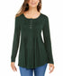 Style & Co Women's Long Sleeve Pintuck Top Green- Size Small