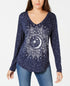 Style & Co Women's Medallion-Graphic V-Neck Top Navy Size X-Small