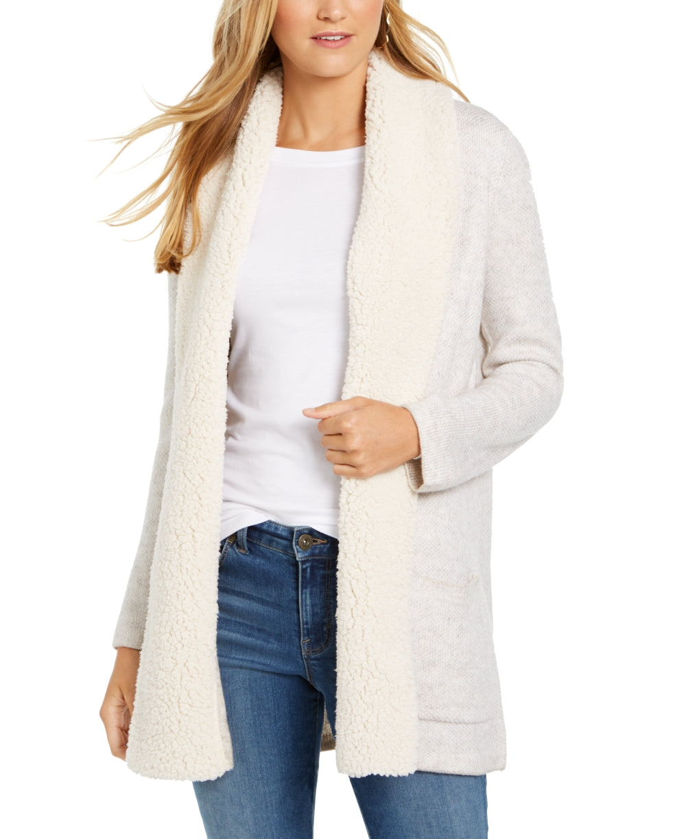 Style & Co Women's Petite Sherpa Cardigan White Size P/XL