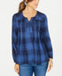 Style & Co Women's Plaid Split-Neck Top Blue Size Large