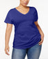 Style & Co Women's Plus V-Neck T-Shirt Blue Size 0X