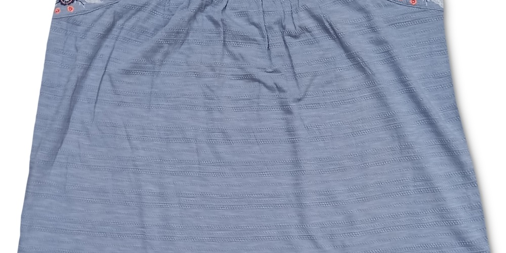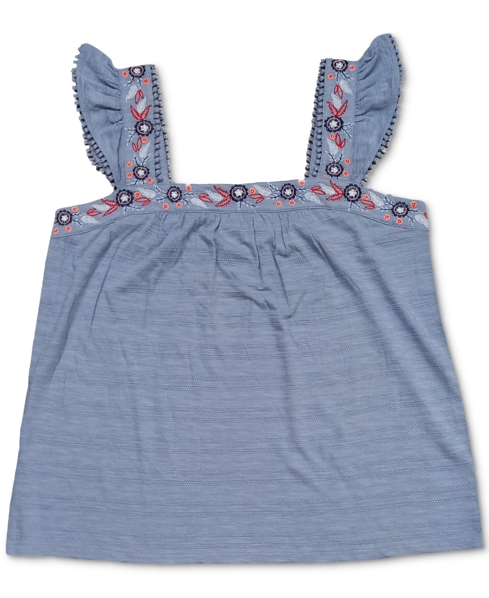 Style & Co Women's Pointelle Linear Jacquard Embroidered Strap Top Blue Size 0X