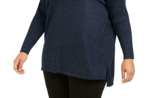 Style & Co Women's Seam-Front Tunic Sweater Dark Blue Size Medium